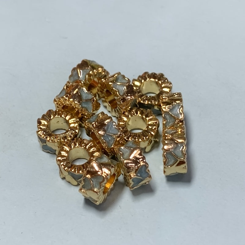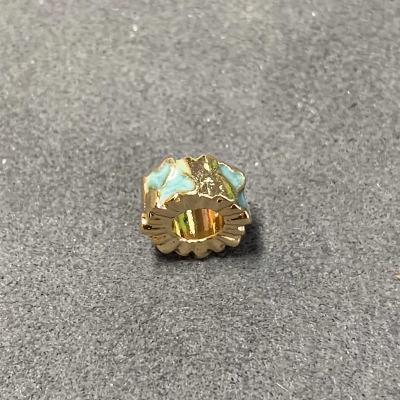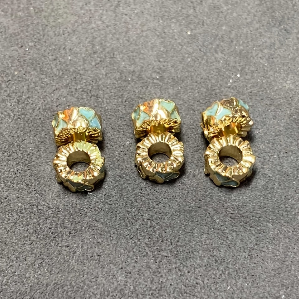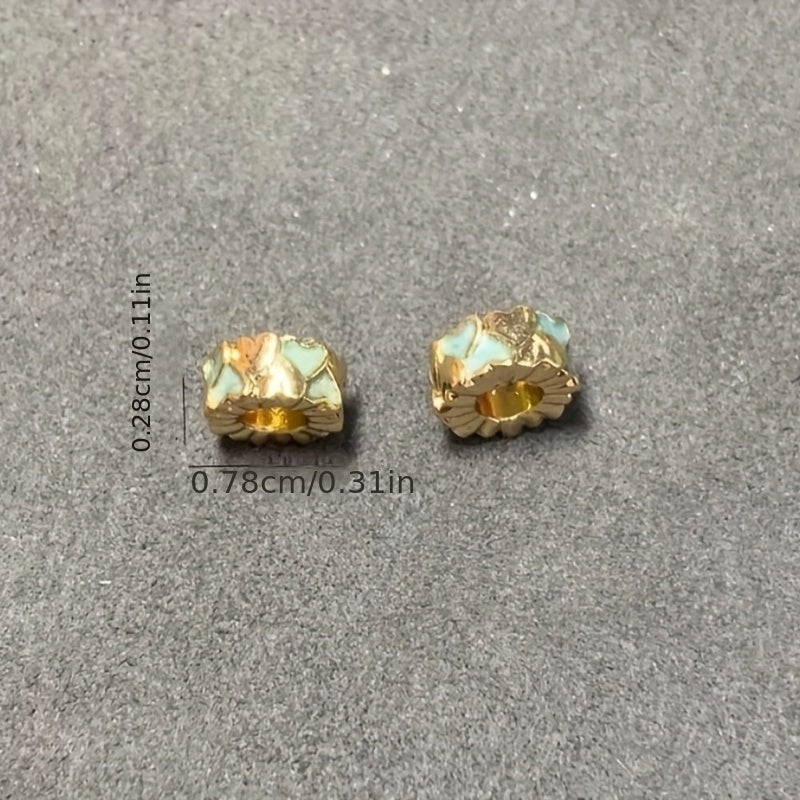 Add a touch of elegance to your jewelry creations with this golden tube bead featuring a colorful painted heart pattern. Perfect for earrings, bracelets, necklaces, and more.