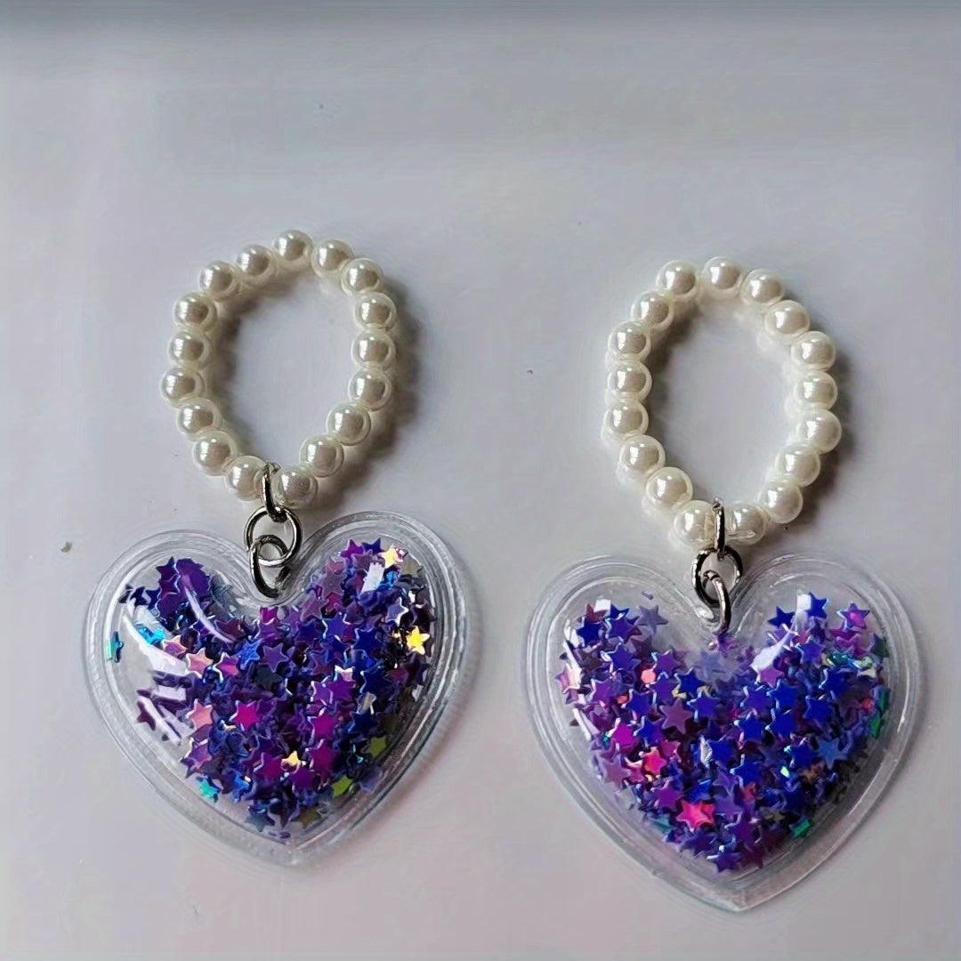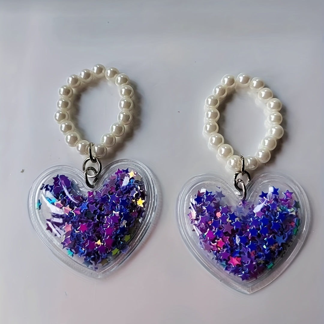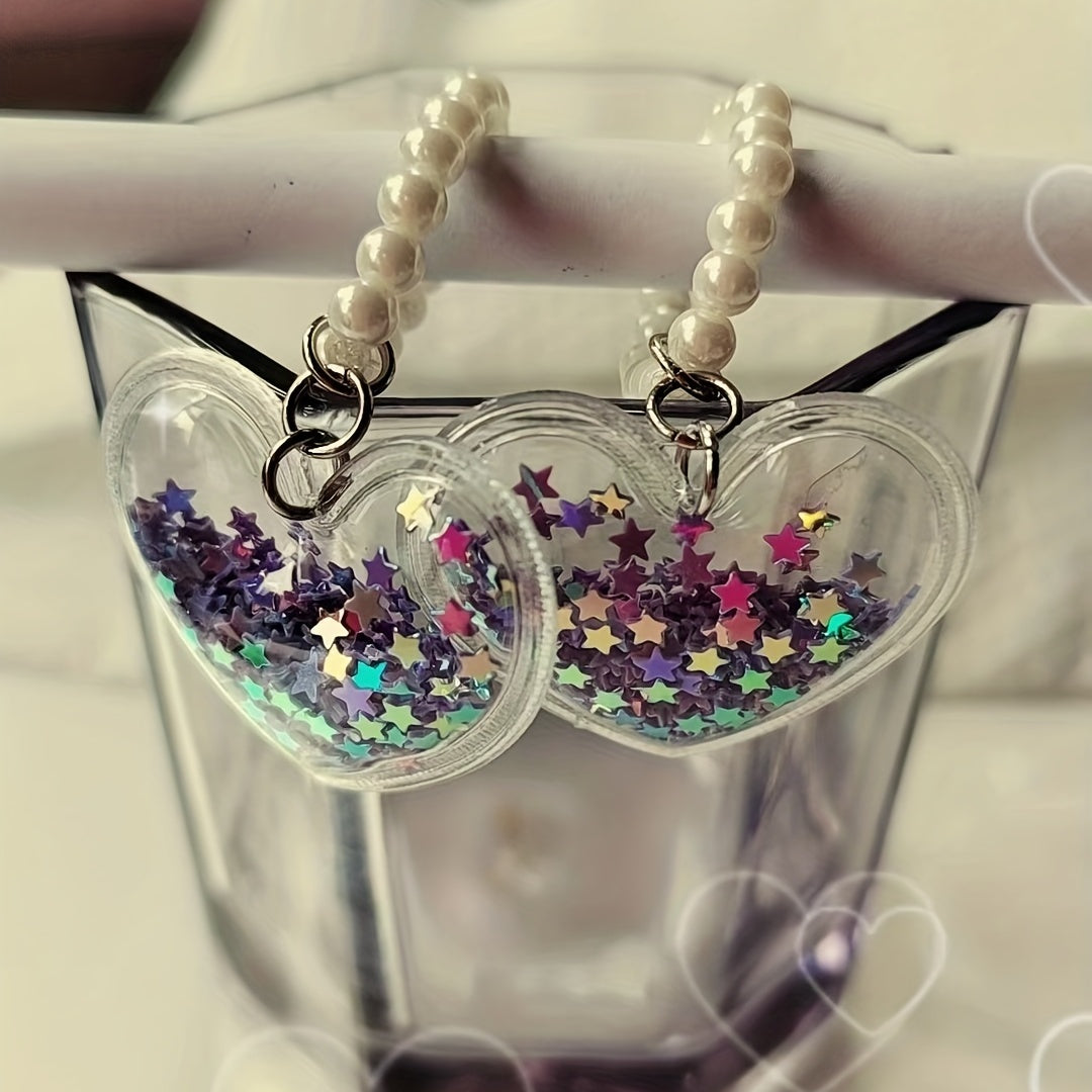 Create your own unique necklace, bracelet, or earring with this DIY pendant. The pendant features a lovely heart shape and five star design with a quicksand effect, complemented by a simulated pearl beaded chain.