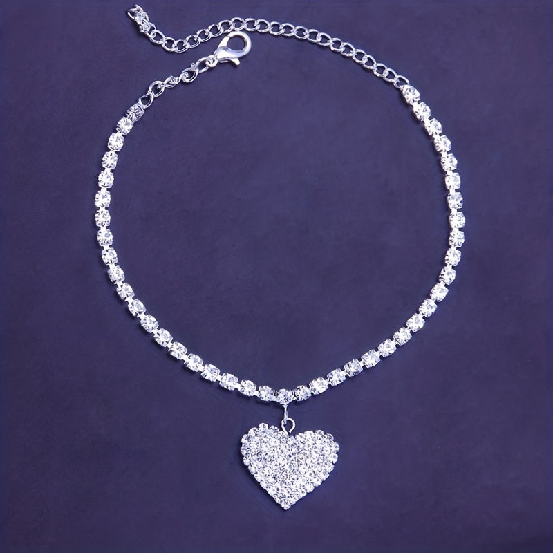 Add a touch of personality with this heart-shaped anklet featuring a dazzling diamond pendant. Perfect for adding some glam to your look.