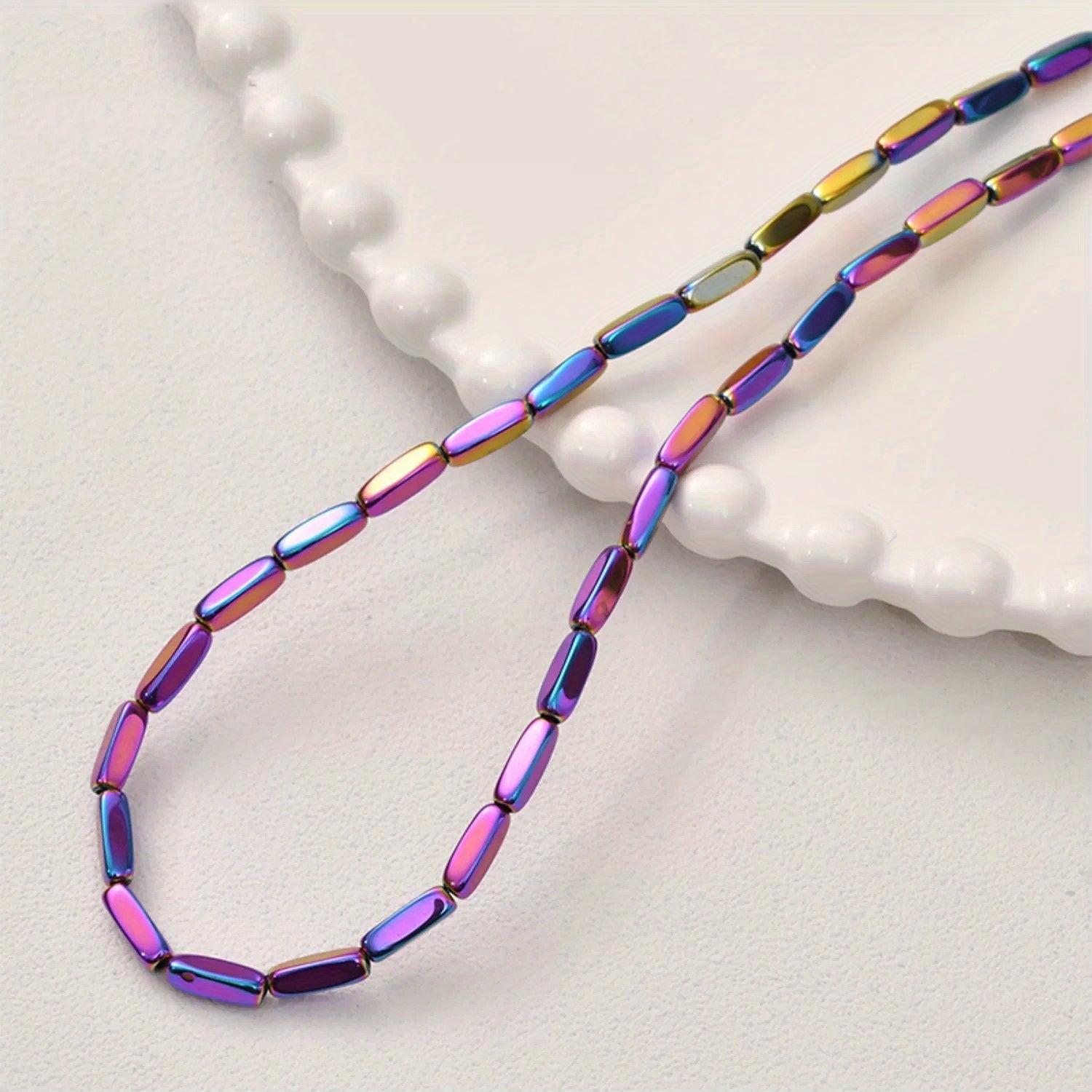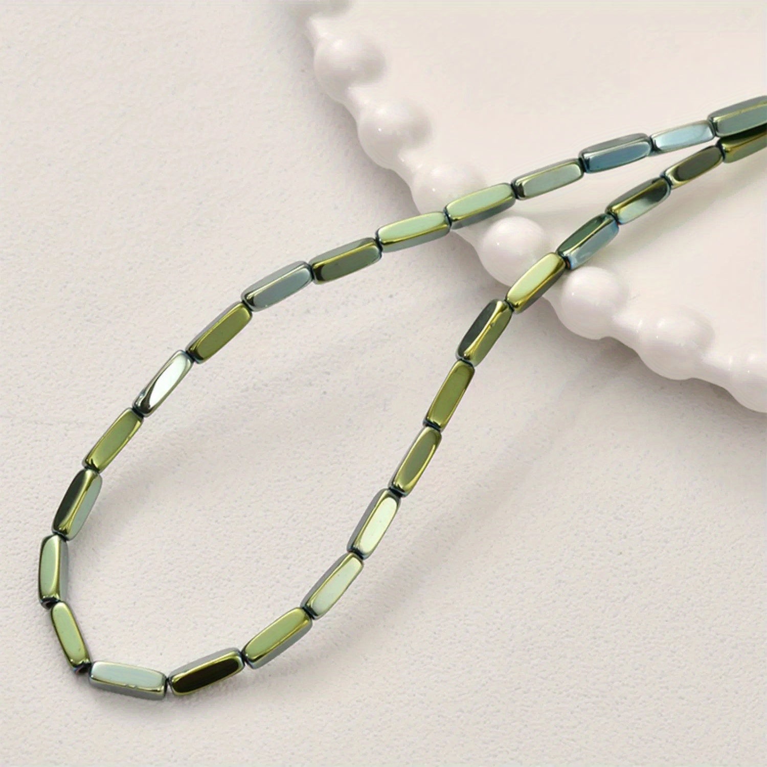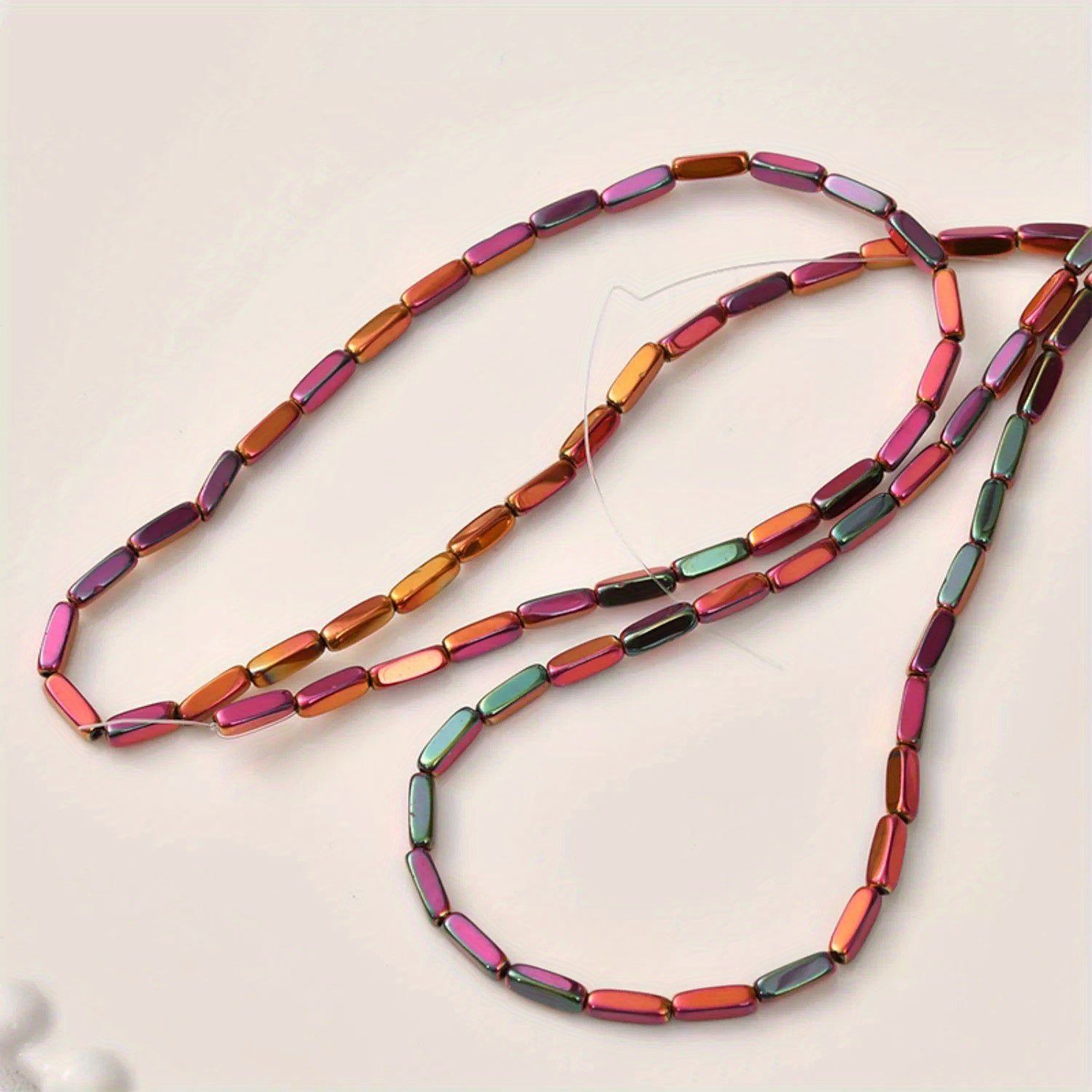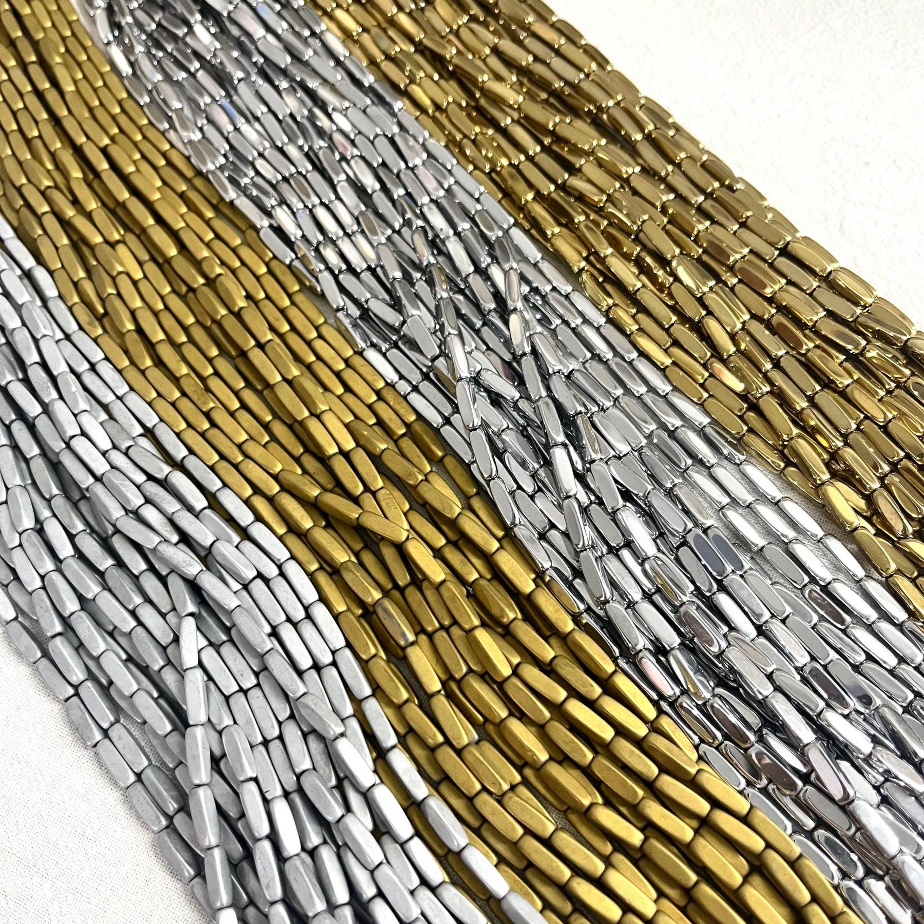 • 15-inch strand of Hematite tube beads