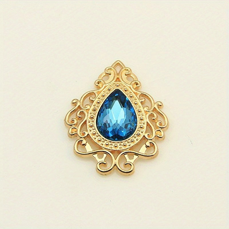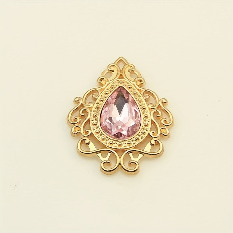 Enhance your clothing and jewelry designs with this stylish water drop shape alloy charm featuring colorful rhinestone decorations.
