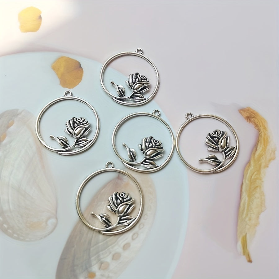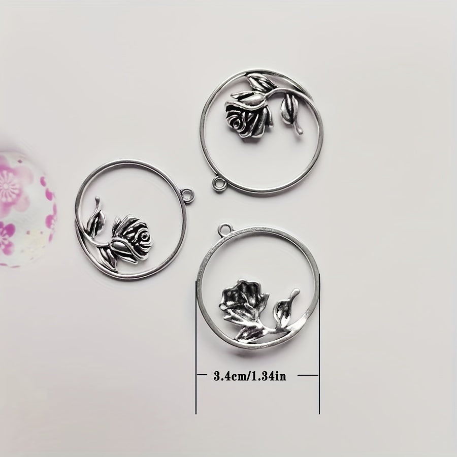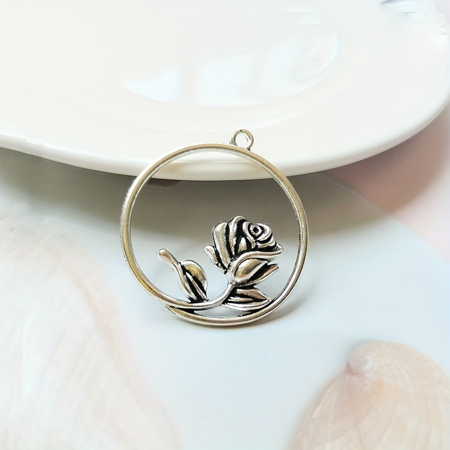 Hollow Rose Flower Alloy Hoop Pendant DIY Bracelet Necklace