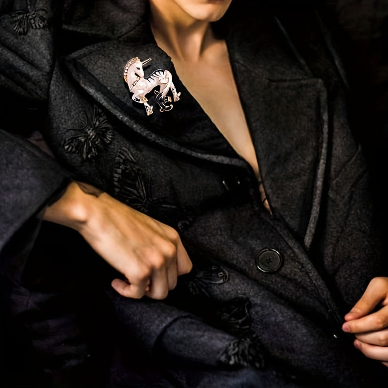 Add a touch of whimsy to your outfit with this adorable horse brooch in the shape of a unicorn. Perfect for suits and clothing.
