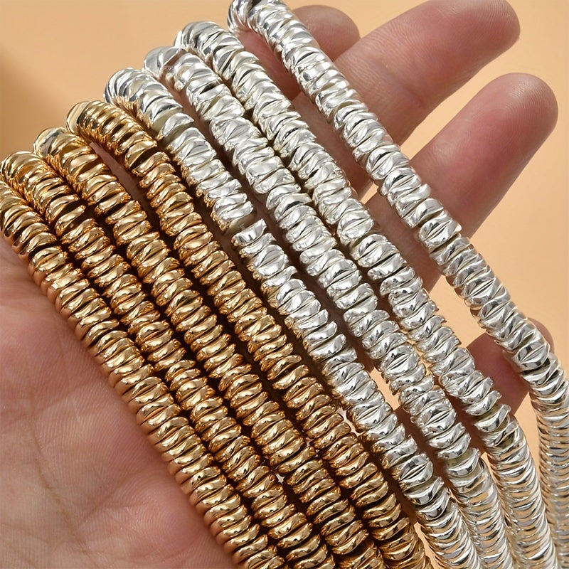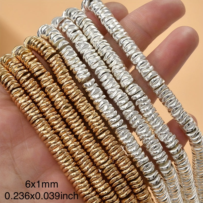Add a touch of elegance to your DIY jewelry projects with these 6x1mm irregular hematite spacer beads. Each strand contains 100 pieces, perfect for creating unique and stylish jewelry pieces.