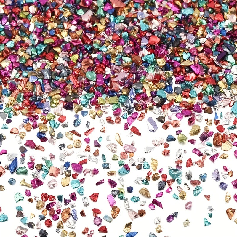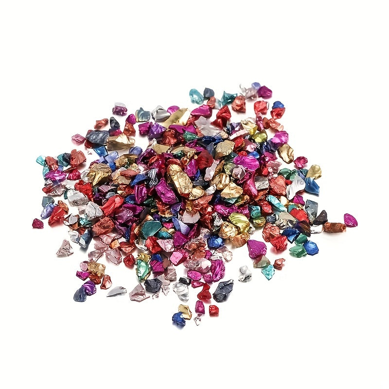This set includes a variety of irregular mixed glass crushed stones that can be used for DIY jewelry making, art crafts, and nail art ornaments. Enhance your creations with these colorful and unique materials.