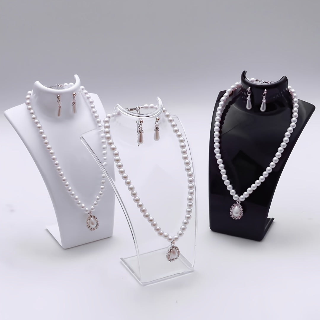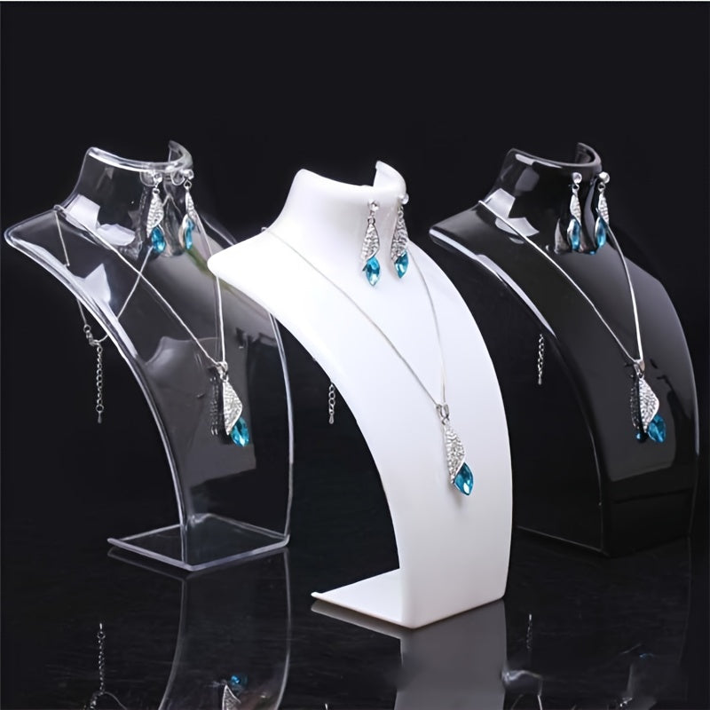 This set includes 5 jewelry display stands perfect for showcasing necklaces, chains, pendants, earrings, and more. The stands are designed to highlight your jewelry pieces elegantly.