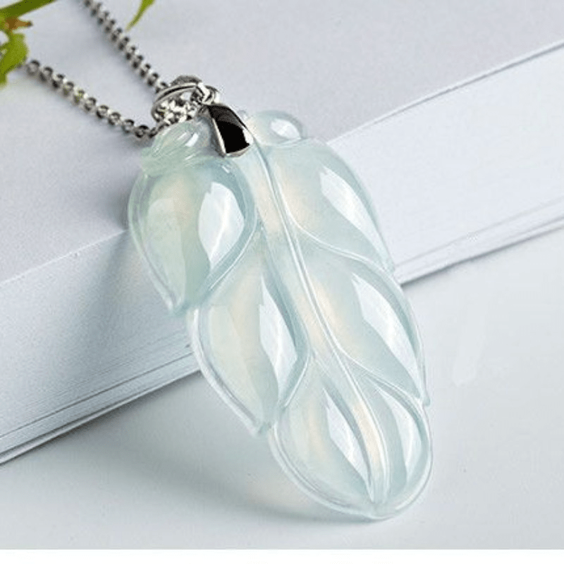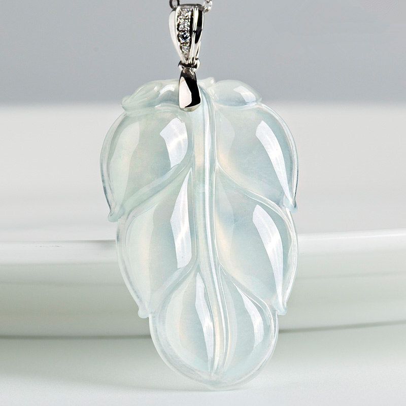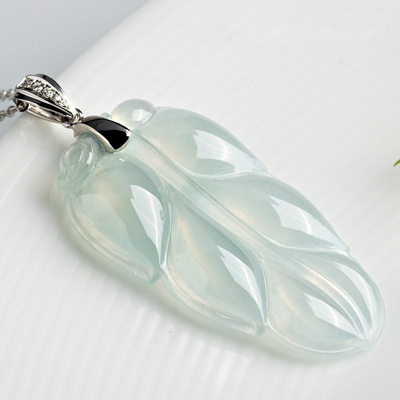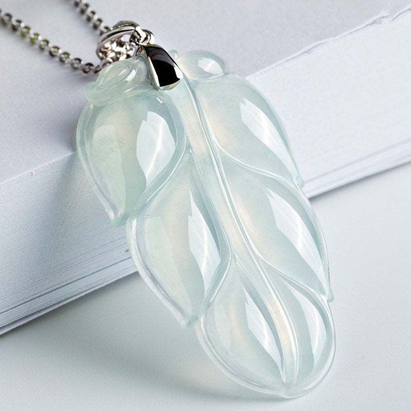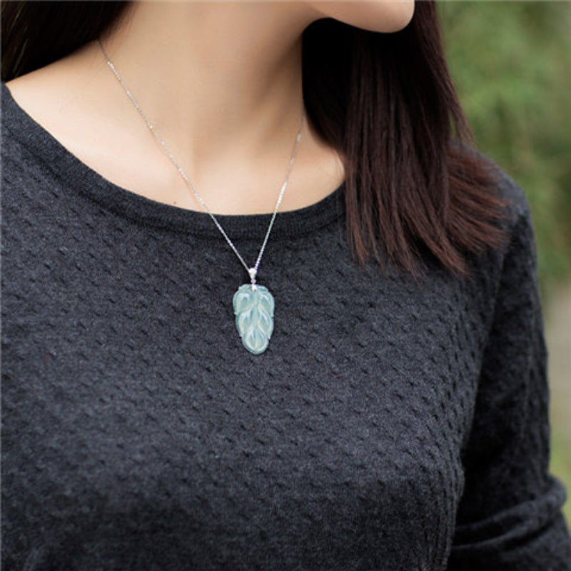 Beautiful leaf design natural jade pendant necklace perfect for birthdays or holidays.
