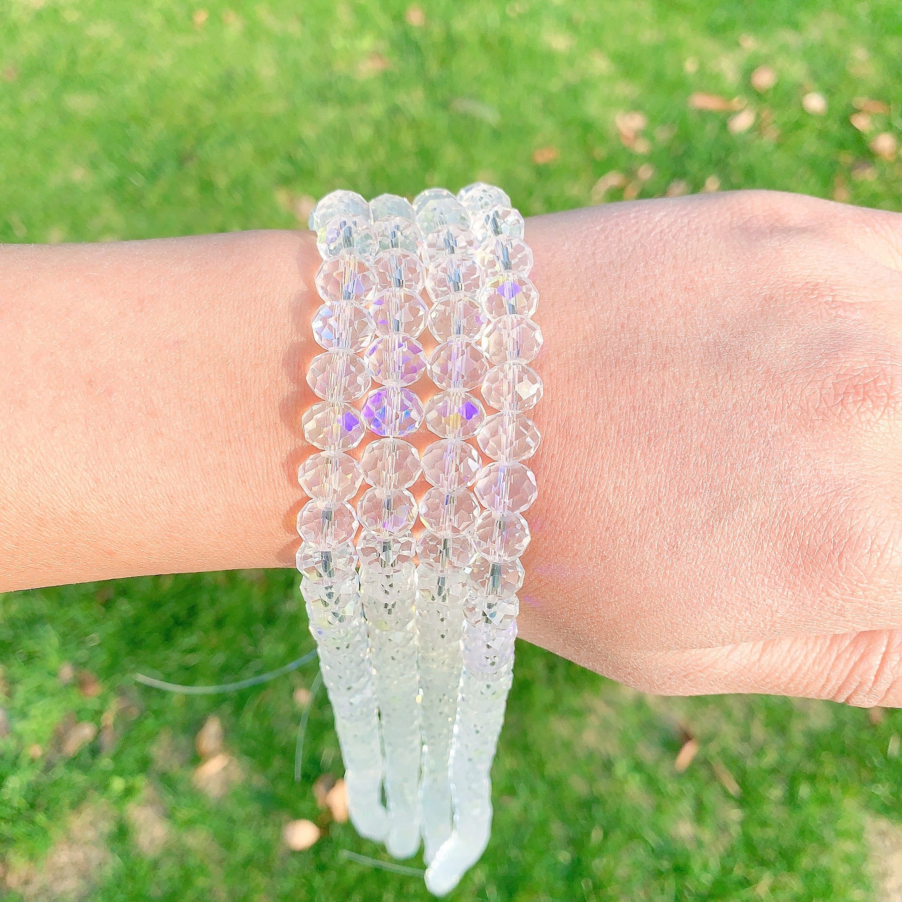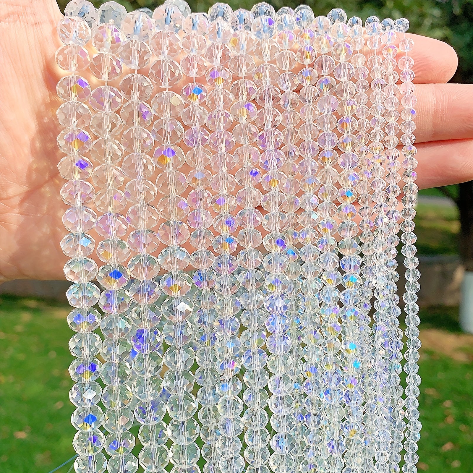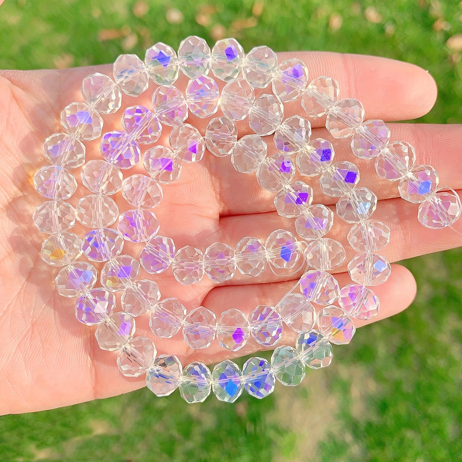 Beautiful light plated AB crystal faceted glass beads perfect for creating DIY bracelets and jewelry accessories.