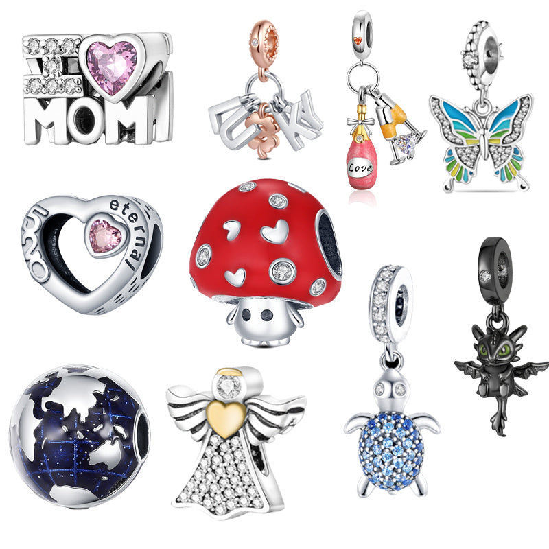 • Features sea turtle, red mushroom, and angel pendant