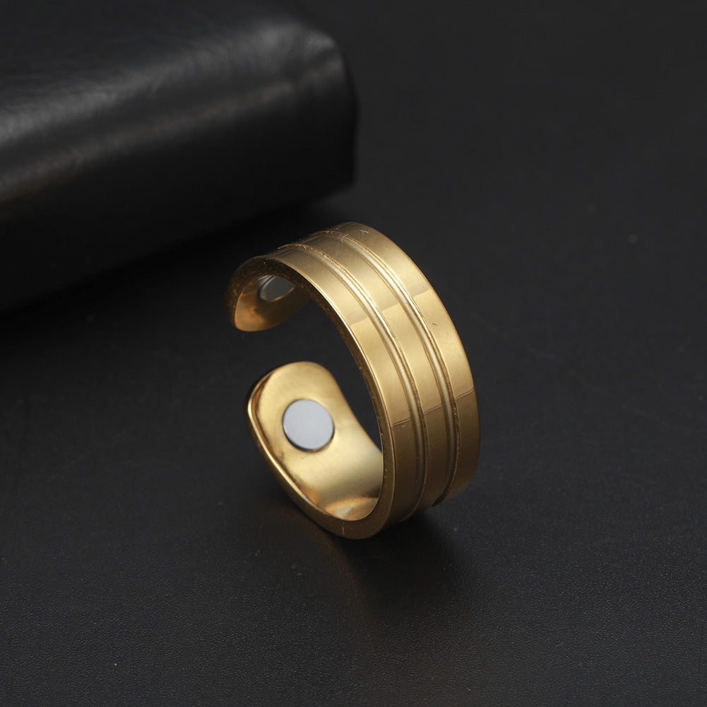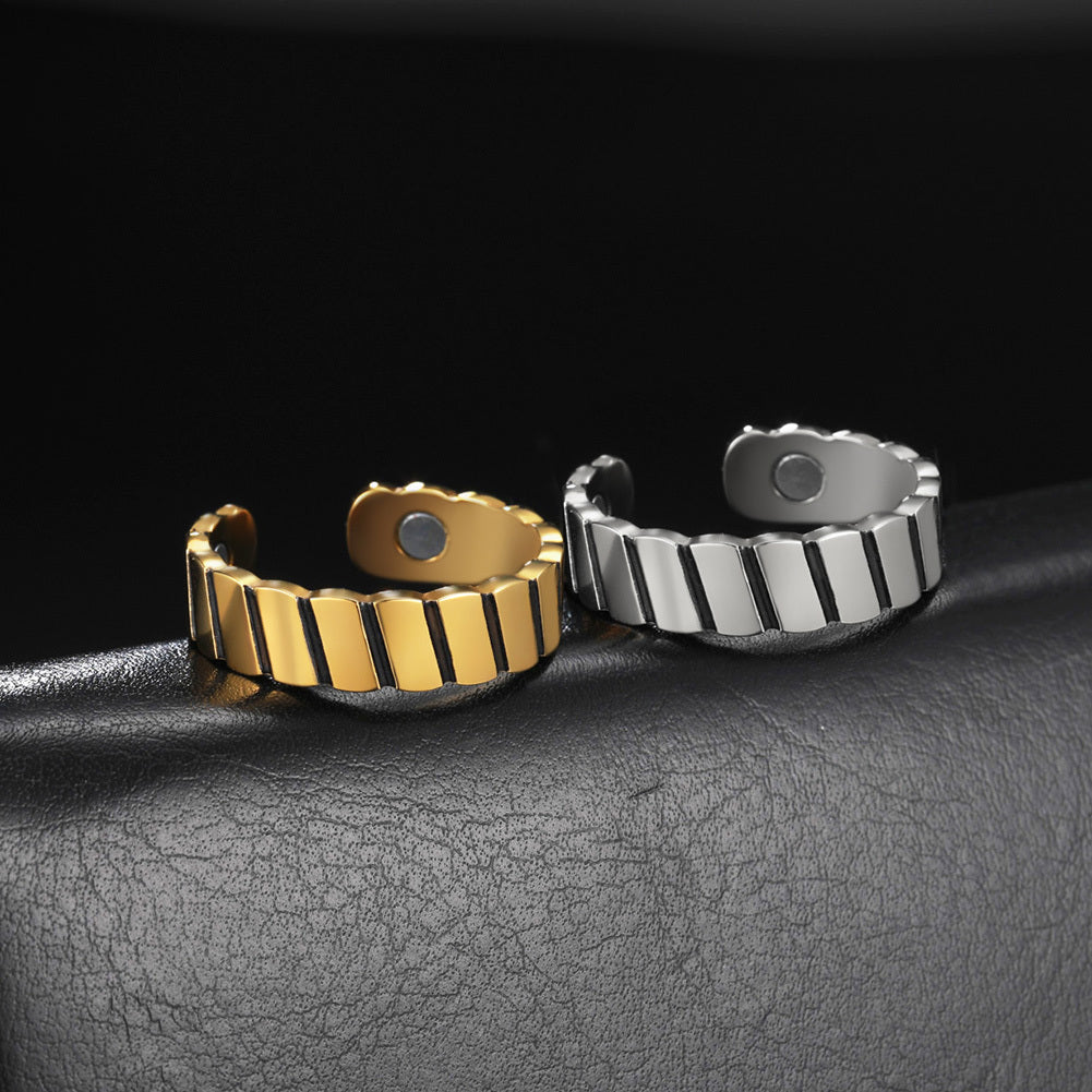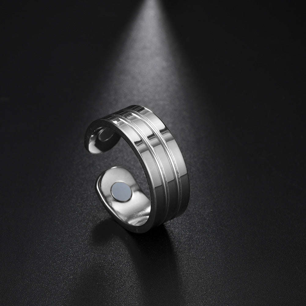 Elegant stainless steel ring with magnetic therapy for a stylish and healing accessory.