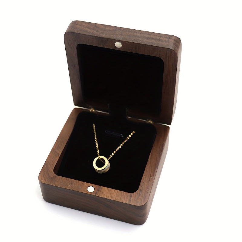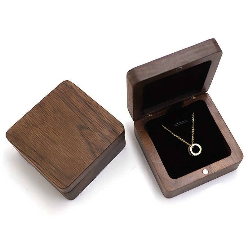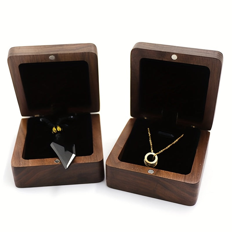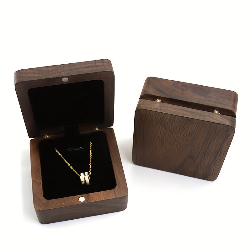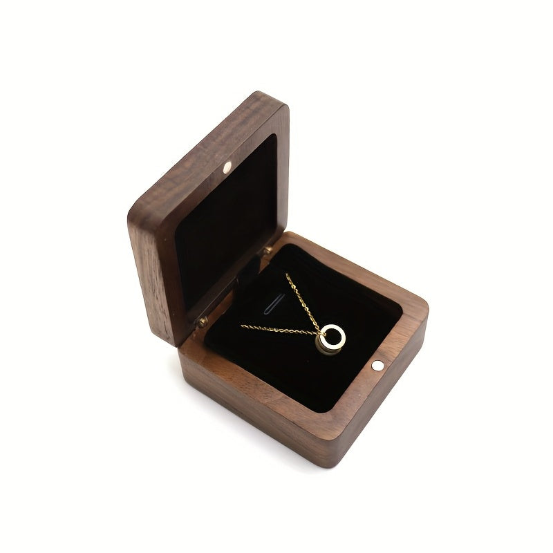 Keep your necklaces safe in this stylish retro walnut box with a magnetic closure.
