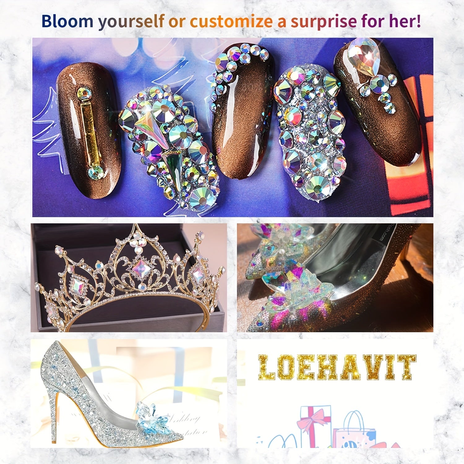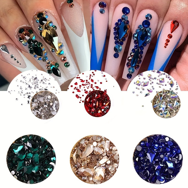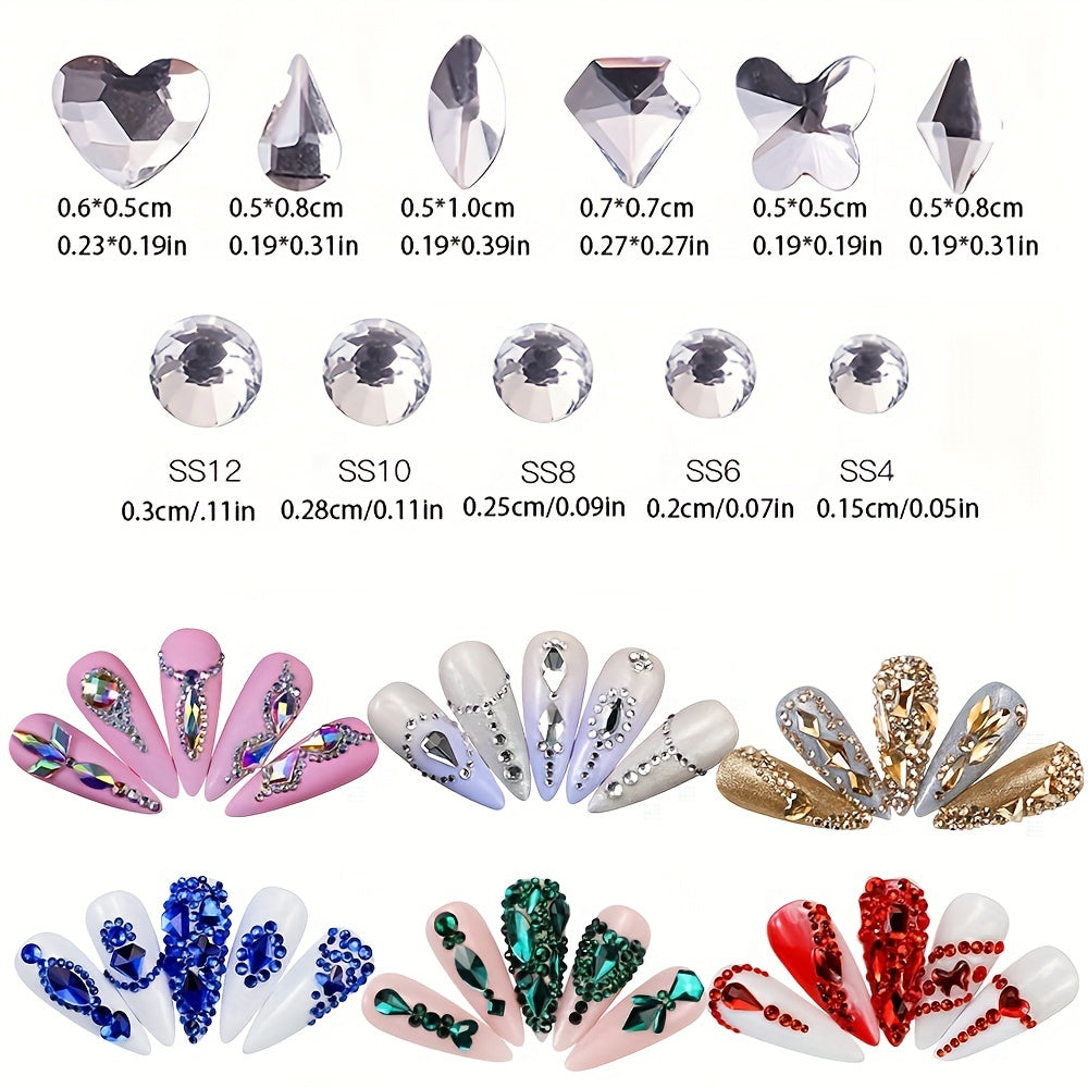 Add a touch of glam to your manicure with this assortment of nail rhinestones. Perfect for makeup, dress up, and decoration on clothes and shoes.