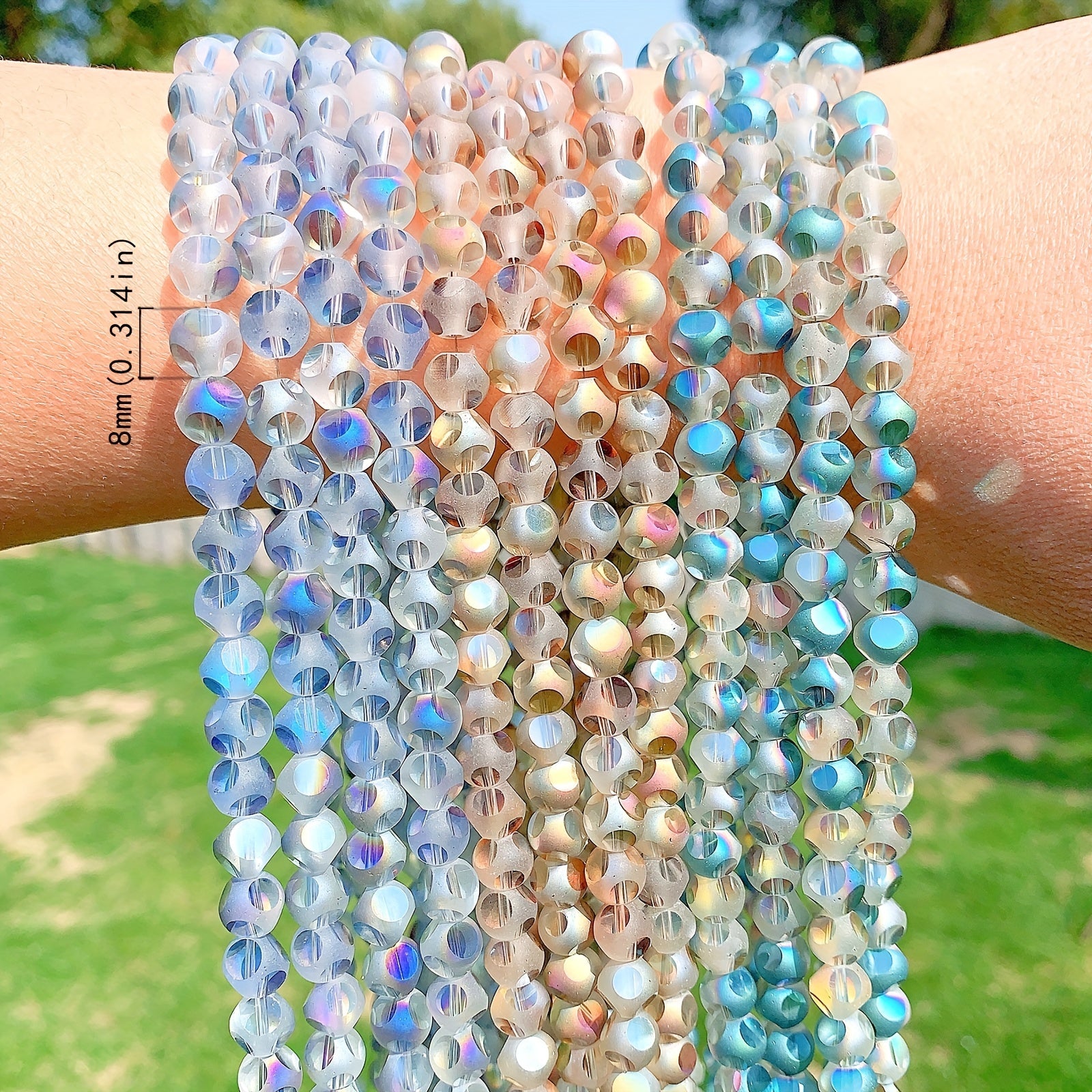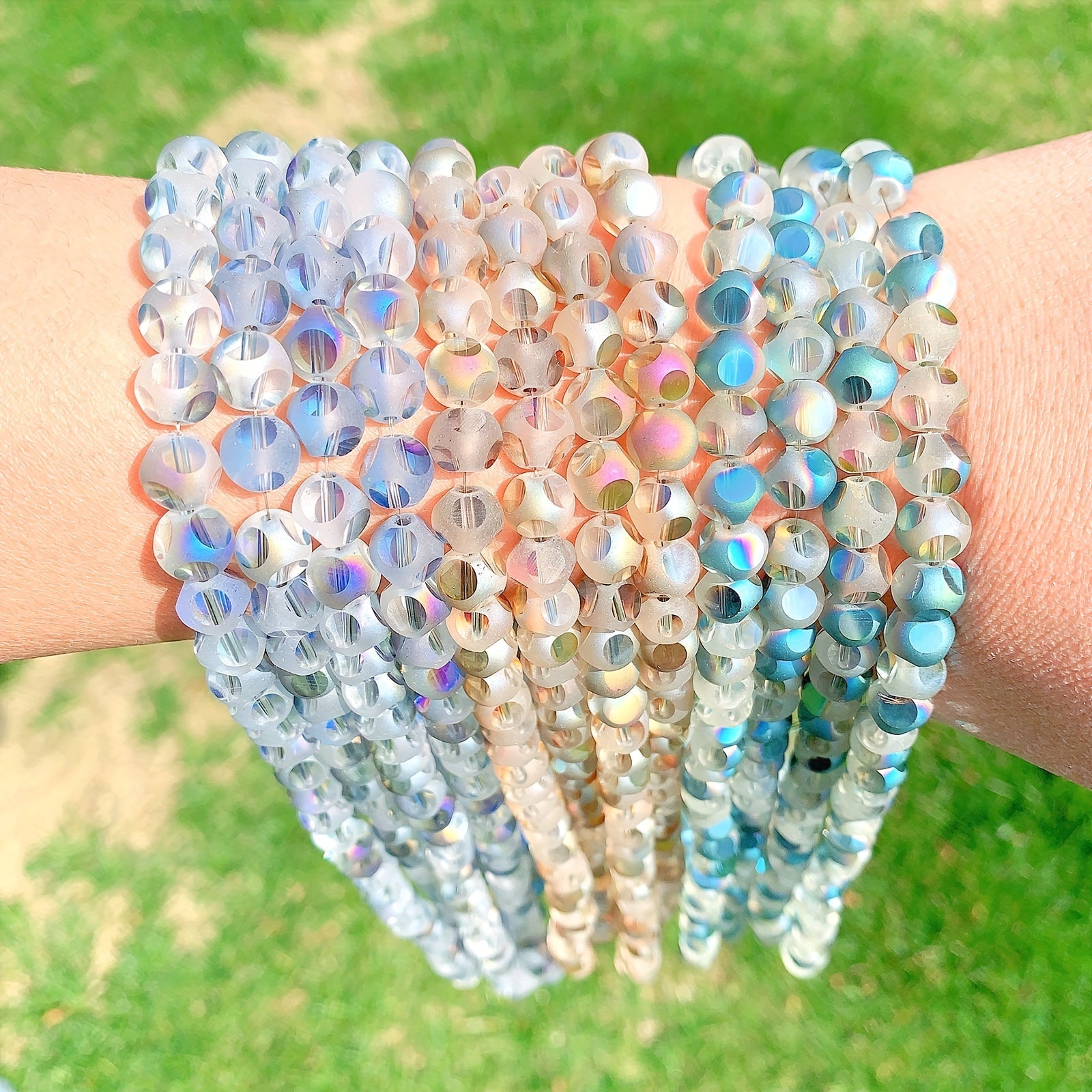 Create stunning jewelry pieces with this set of AB plated matte faceted crystal beads. These versatile spacer beads are perfect for bracelets and other DIY projects.