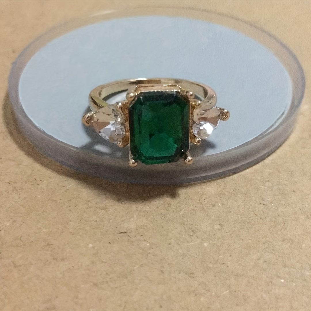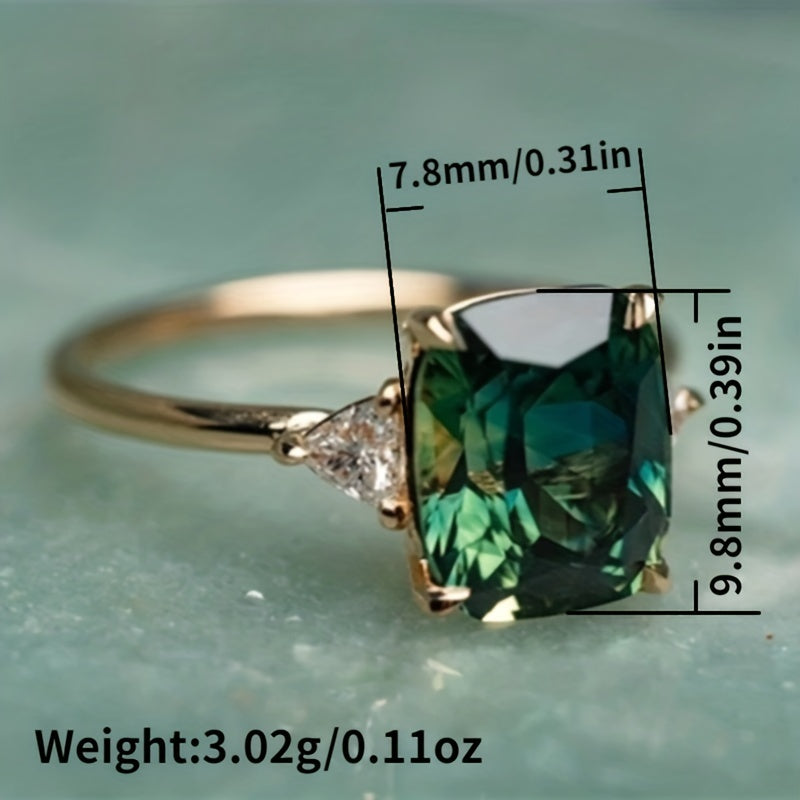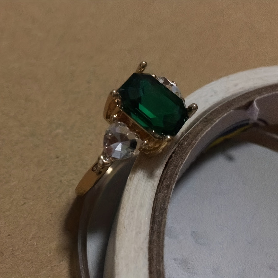This elegant ring is suitable for wedding, engagement, or anniversary. It features a square emerald design with inlaid zircon for added brilliance.