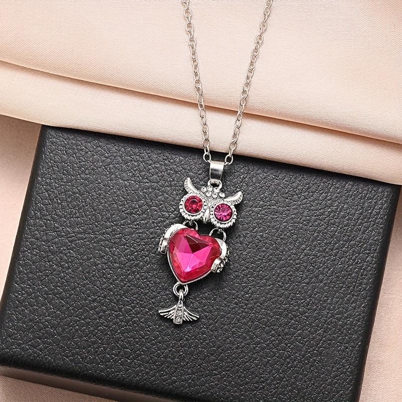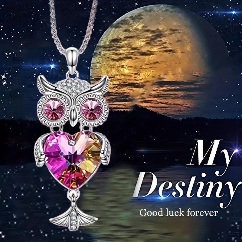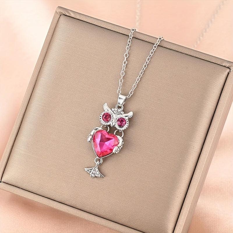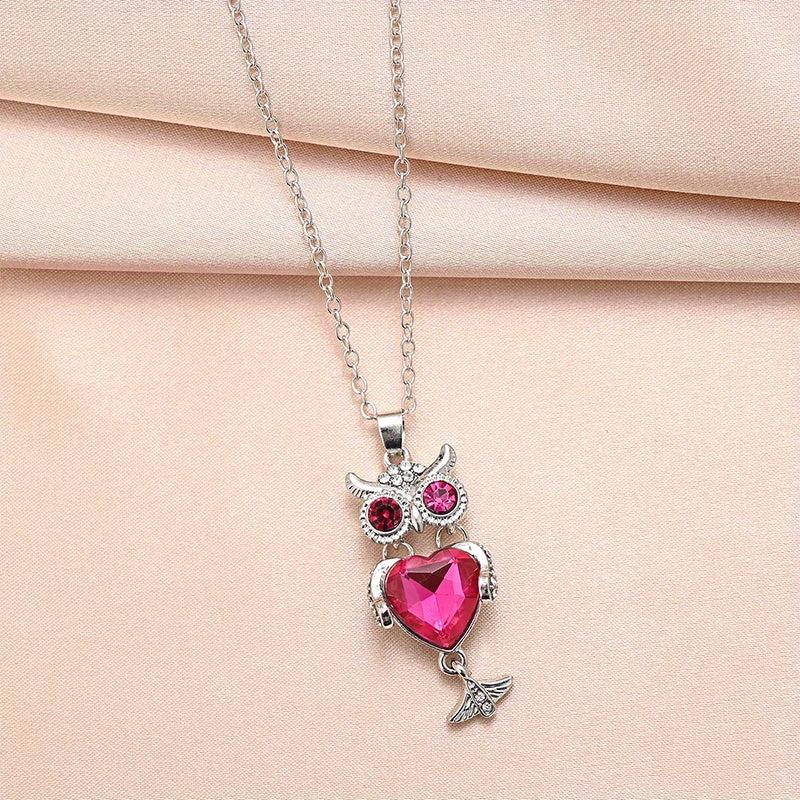 This silver crystal pendant necklace features a generous heart design with an owl pendant. It makes a perfect party jewelry piece for men or women or friends.