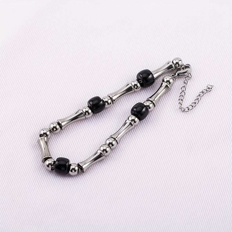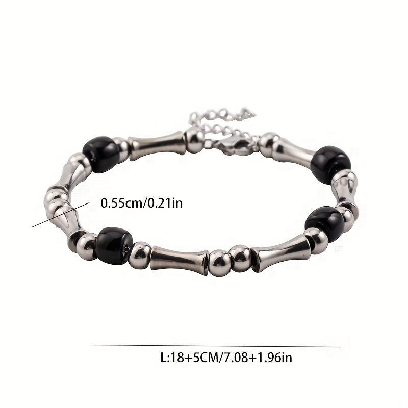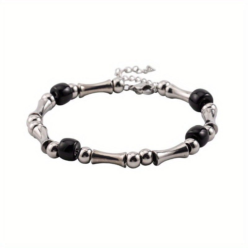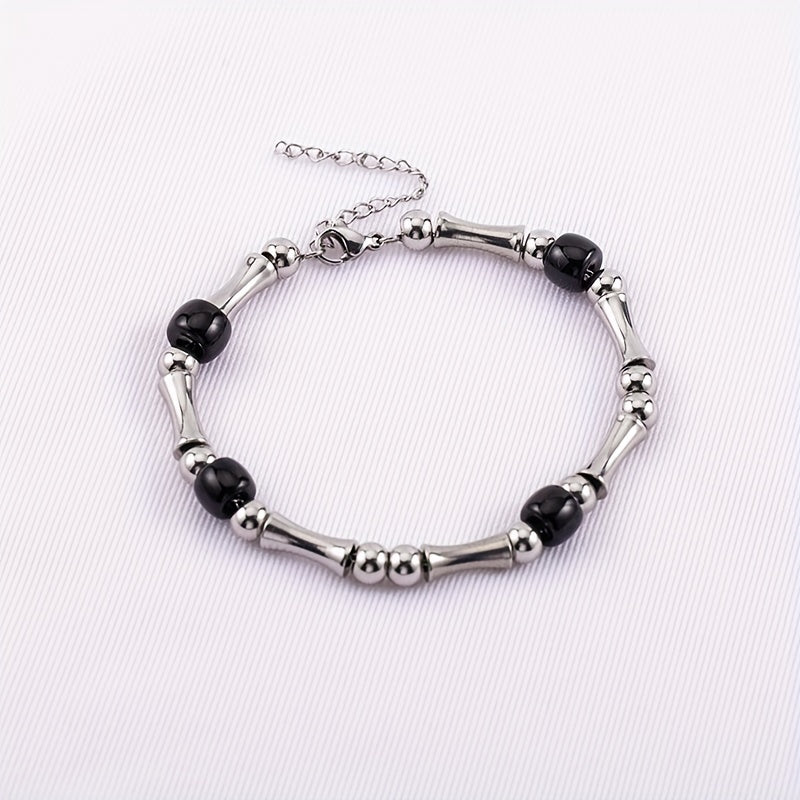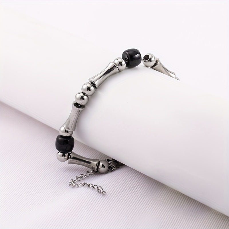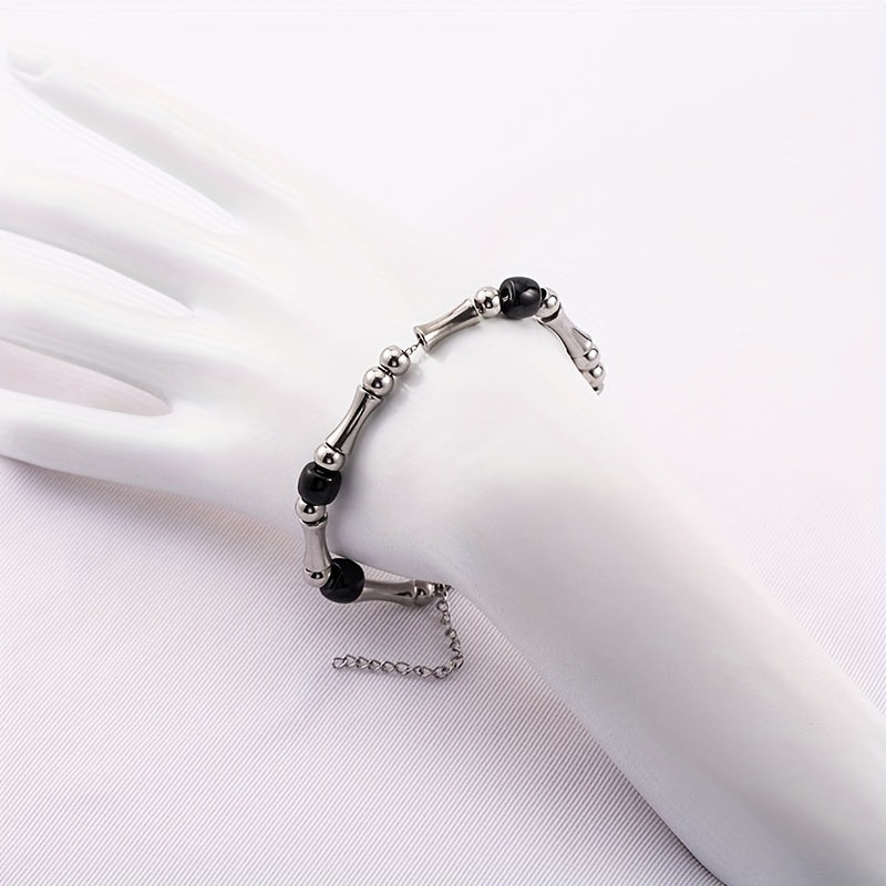 Men's Stainless Steel Bamboo Bead Bracelet, Stylish Design
