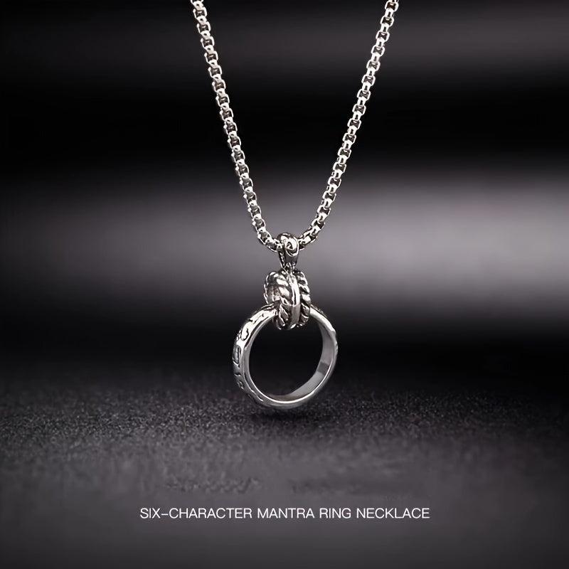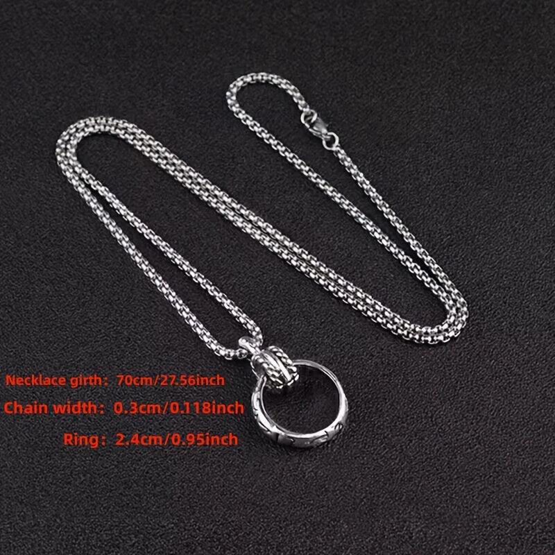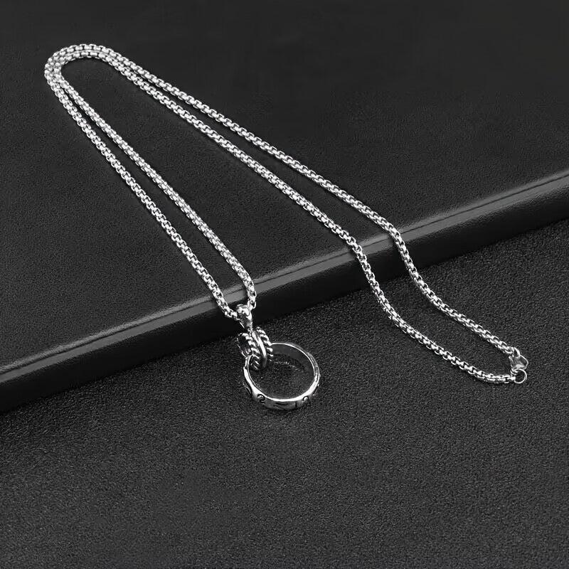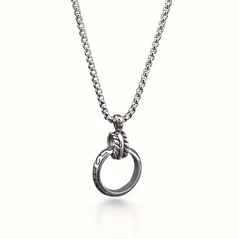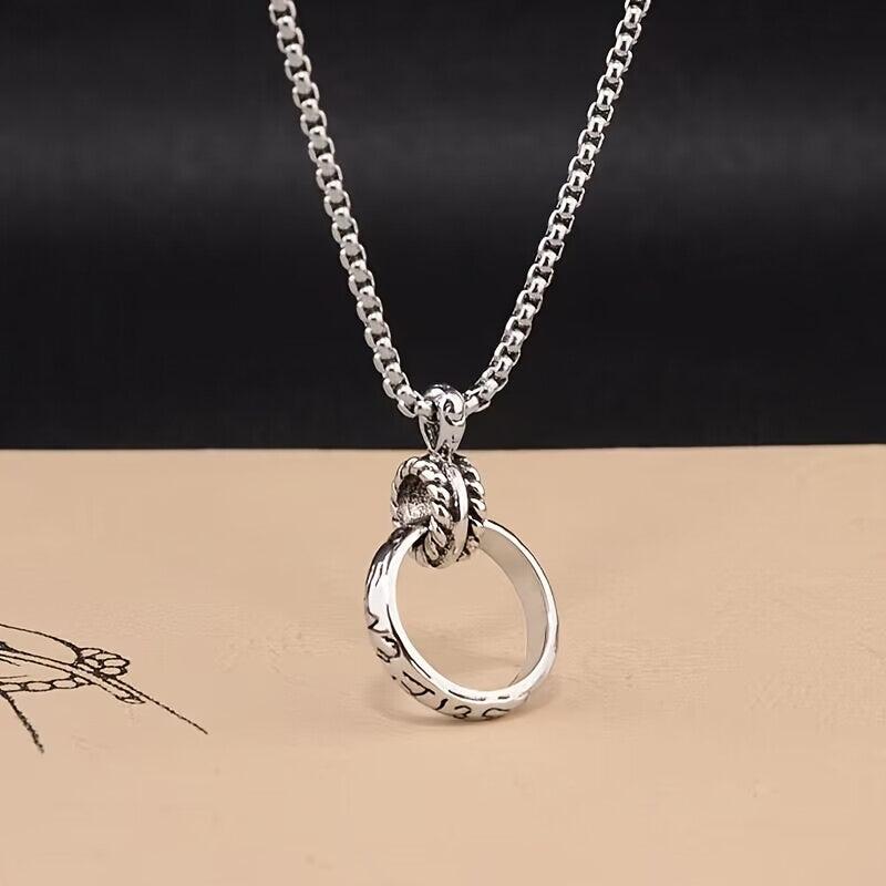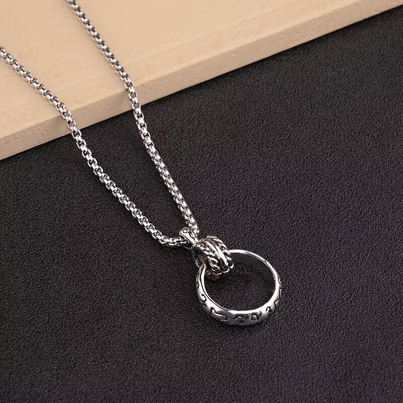 This fashionable pendant necklace is made of titanium steel, designed for couples. It features a ring pendant and a versatile retro style that complements various outfits.