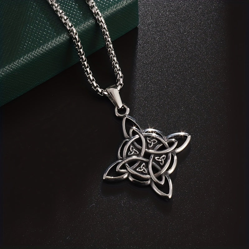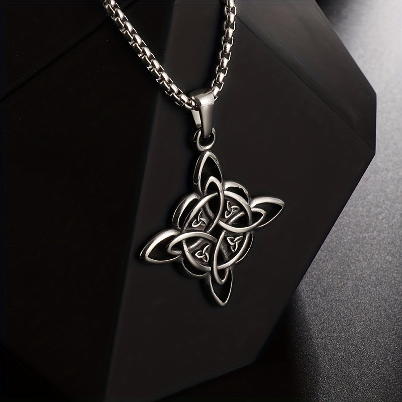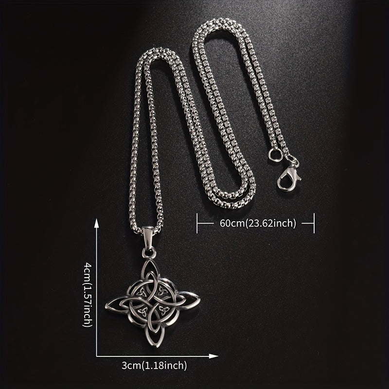 Embrace the mystical with this vintage stainless steel necklace featuring a witch knot pendant. Perfect for those interested in pagan symbols and magic.