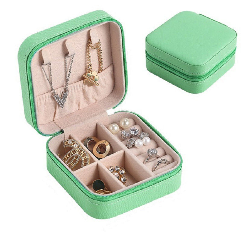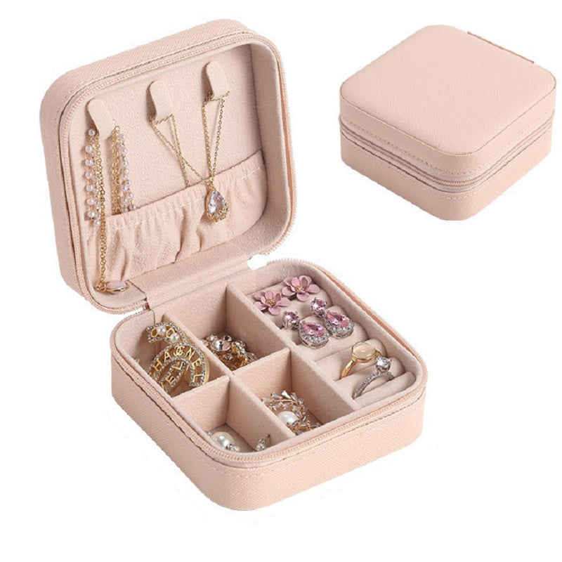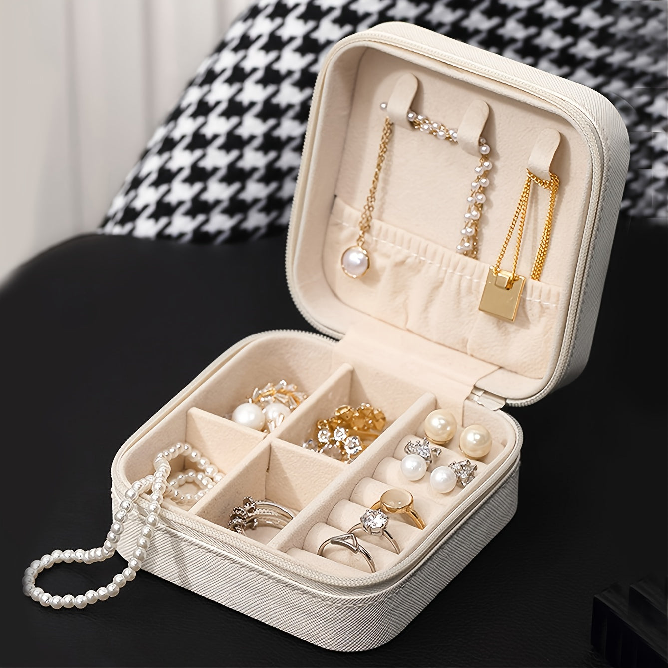 Keep your precious jewelry organized on-the-go with this compact storage box featuring zipper closure.