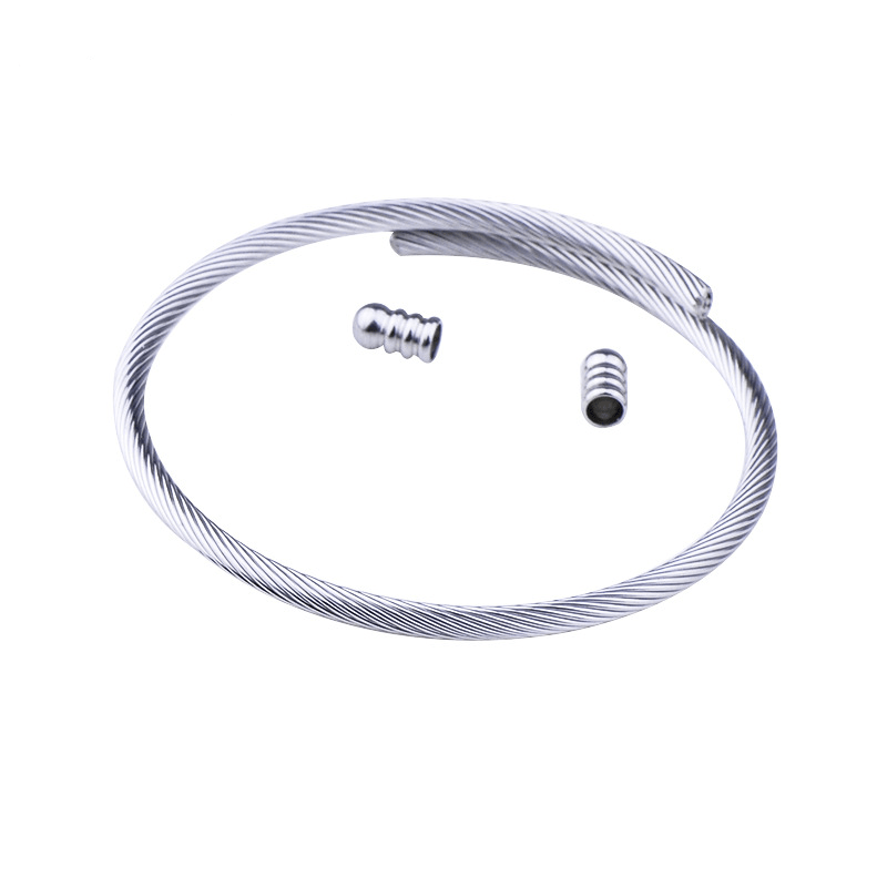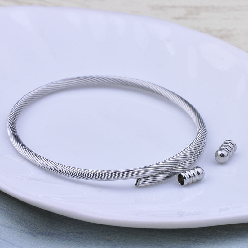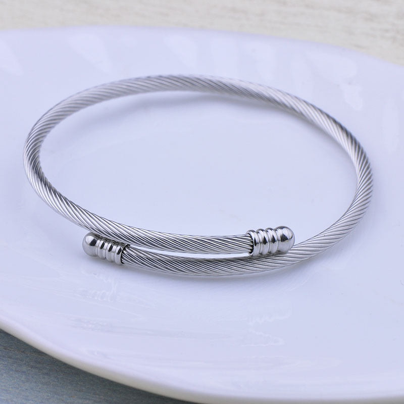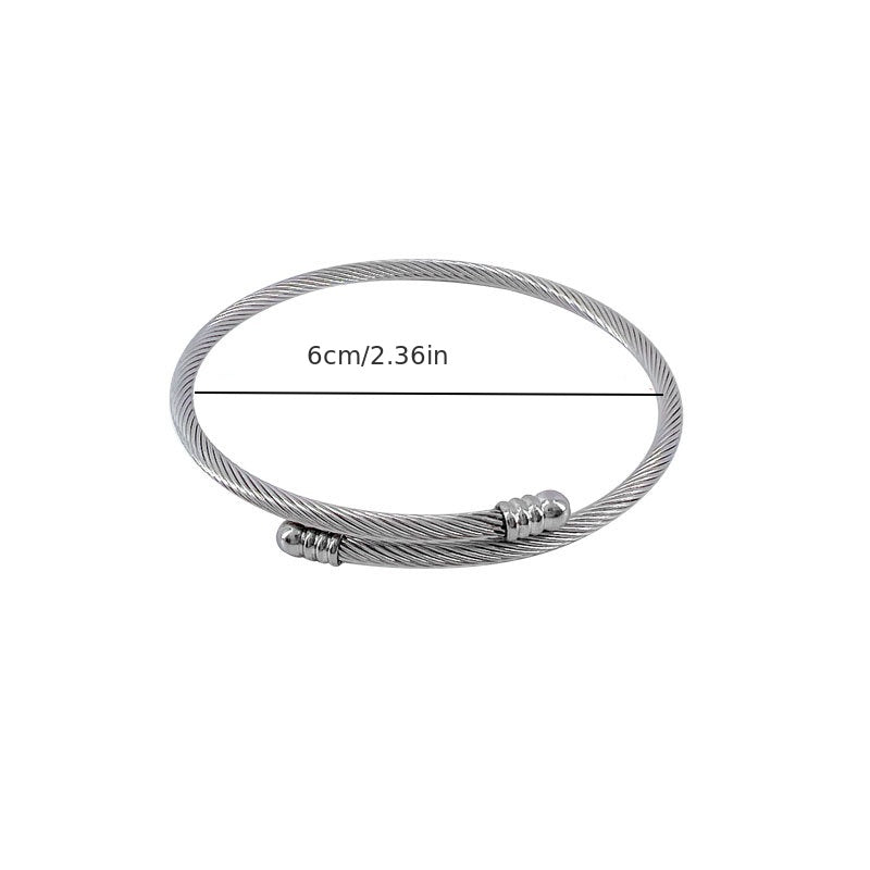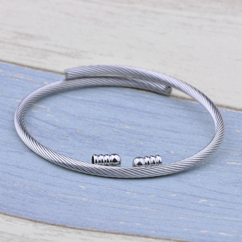 This stainless steel silvery wrap bangle is a minimalist accessory that complements any outfit.
