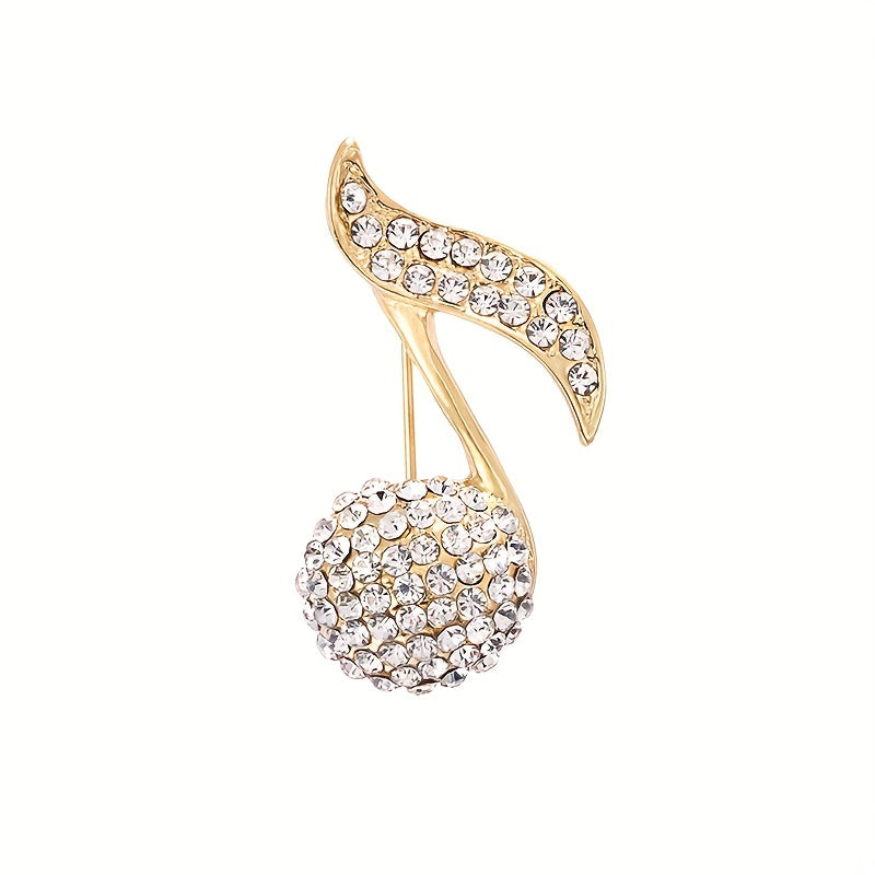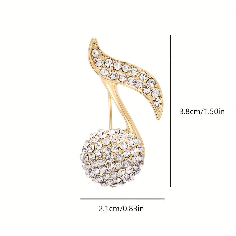 Enhance your outfit with this elegant Music Note Rhinestone Brooch. Perfect for coats, suits, and collars, this accessory adds a touch of charm and sophistication to your look.