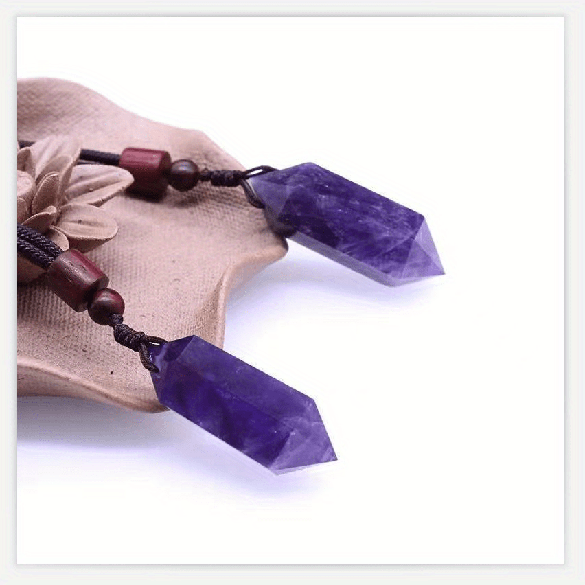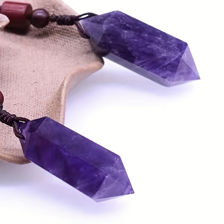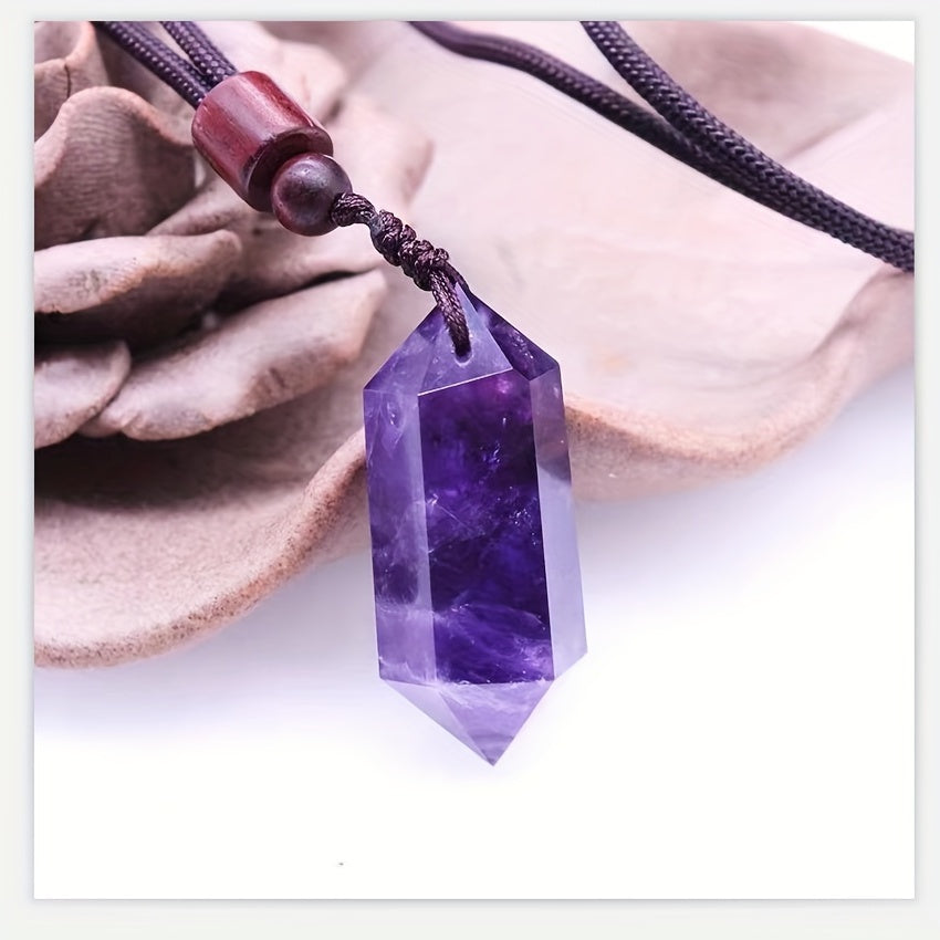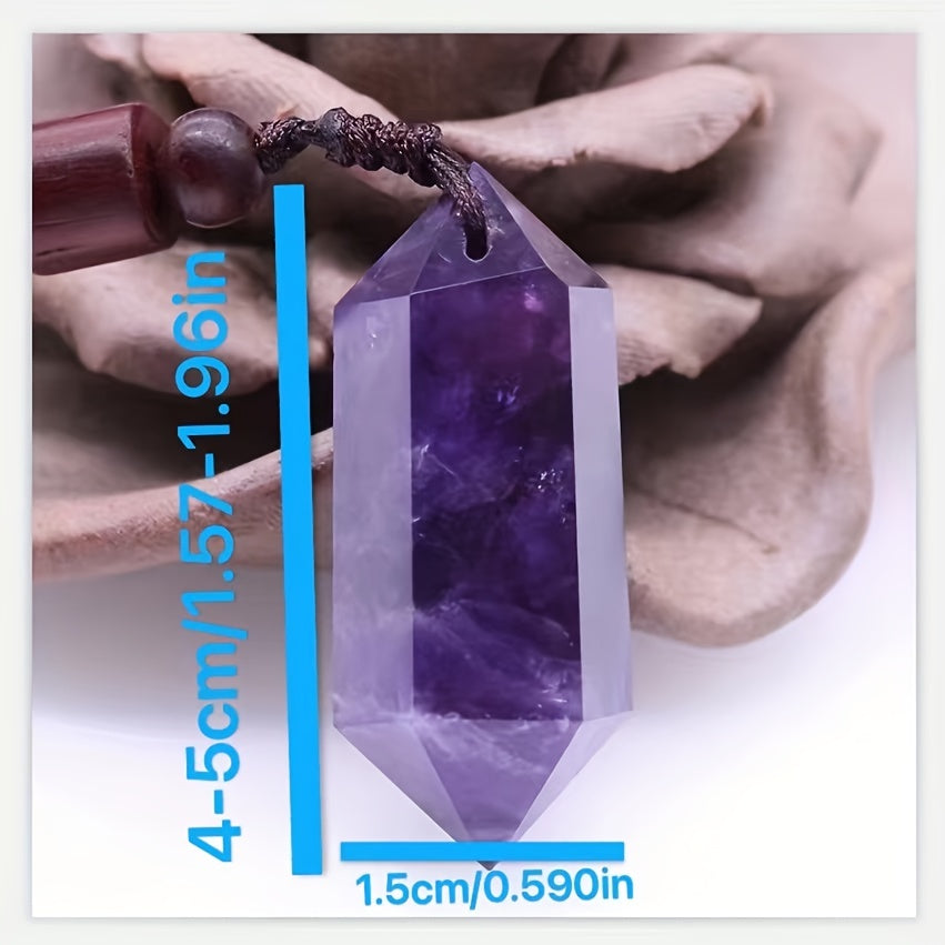 Natural Amethyst Pendant Necklace Crystal Stone Six Prism Pendant