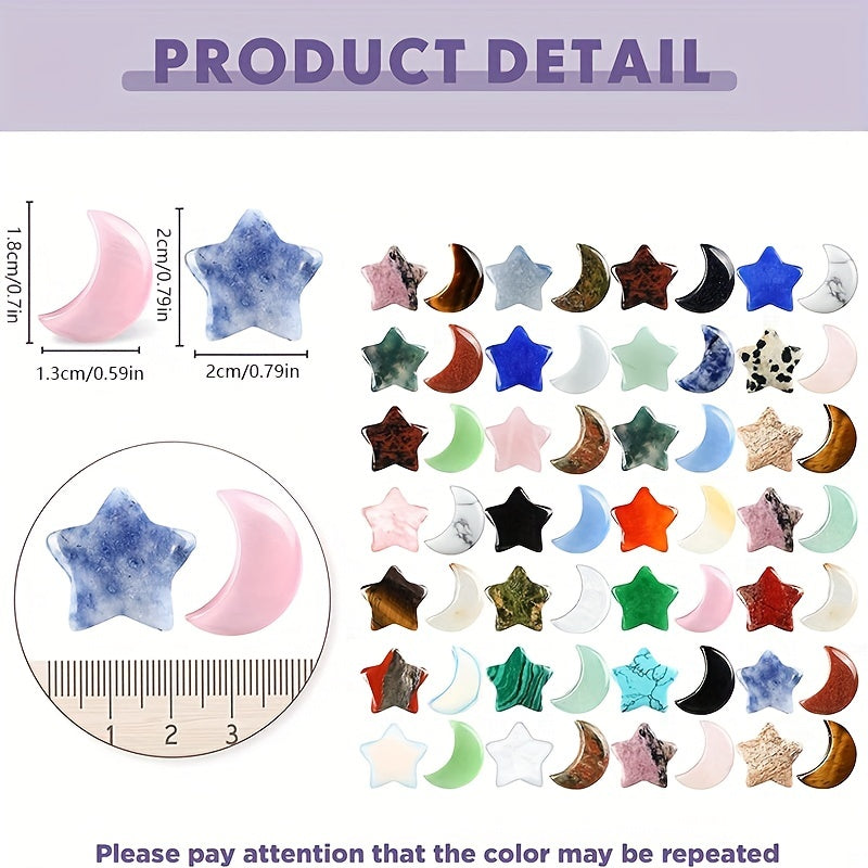 Enhance your fish tank or yoga practice with this pack of natural crystal moon and star shape stones. These stones are perfect for decoration and energy enhancement.