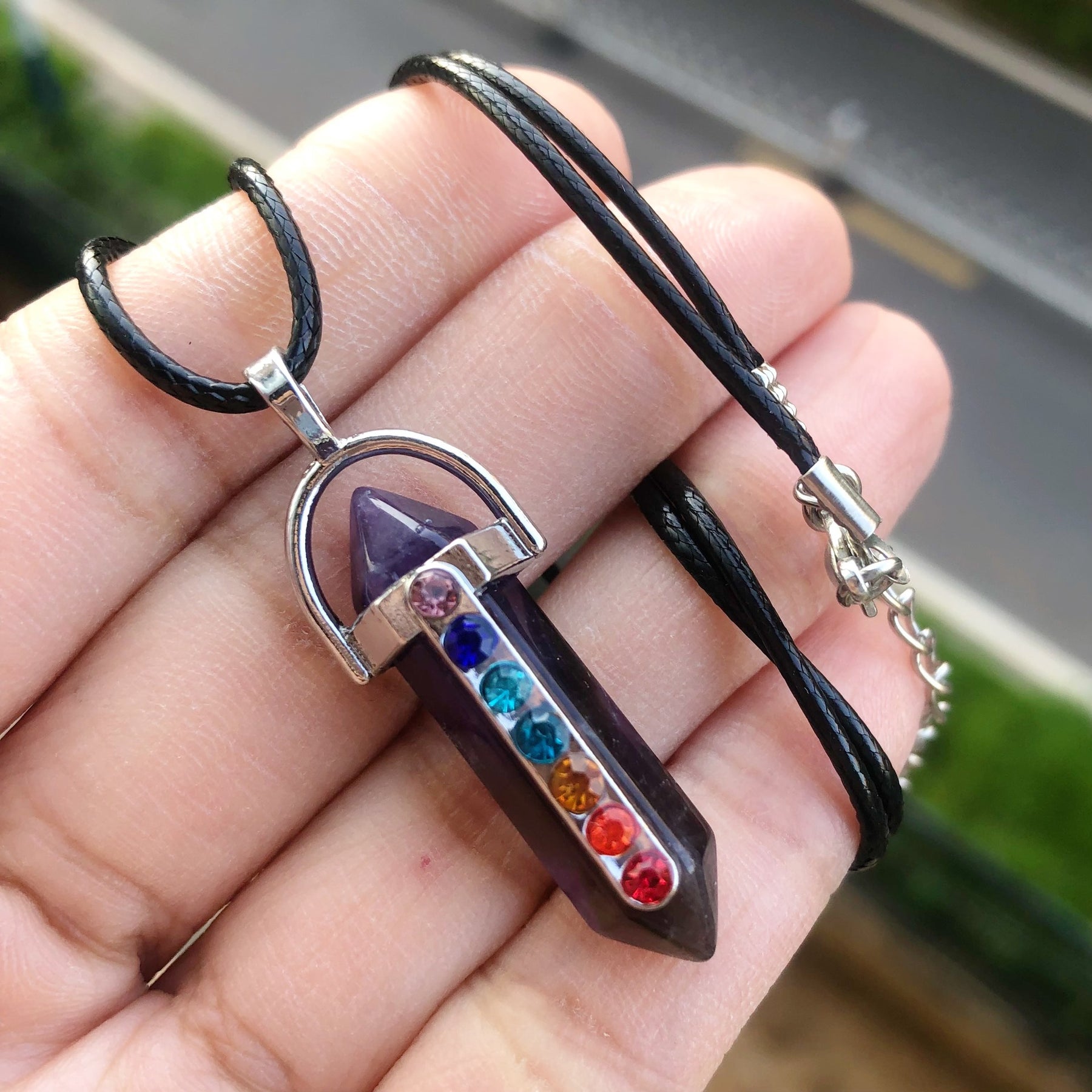 This stunning necklace features a hexagon-shaped natural stone pillar pendant with seven chakra crystals. It is a beautiful and meaningful piece that can help balance your energy and promote positivity.