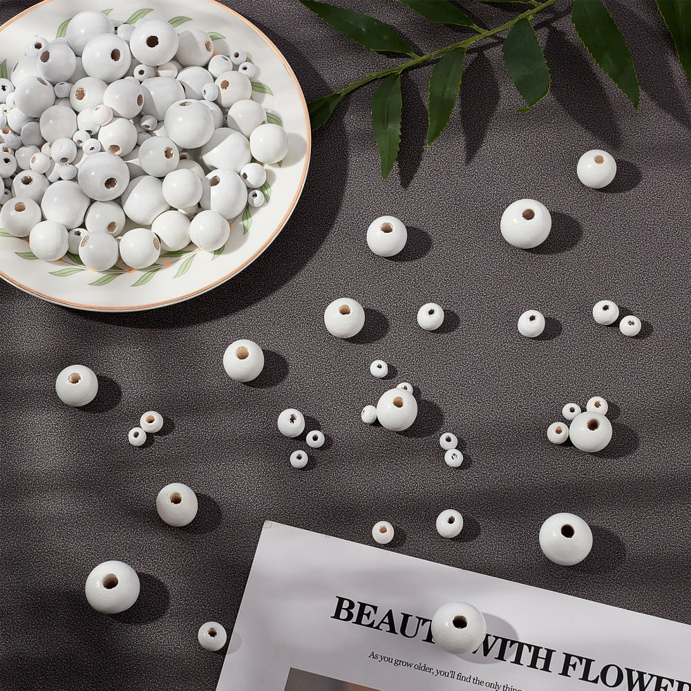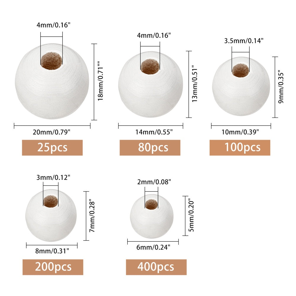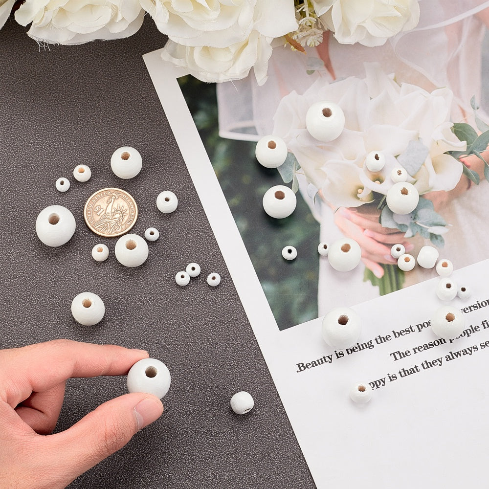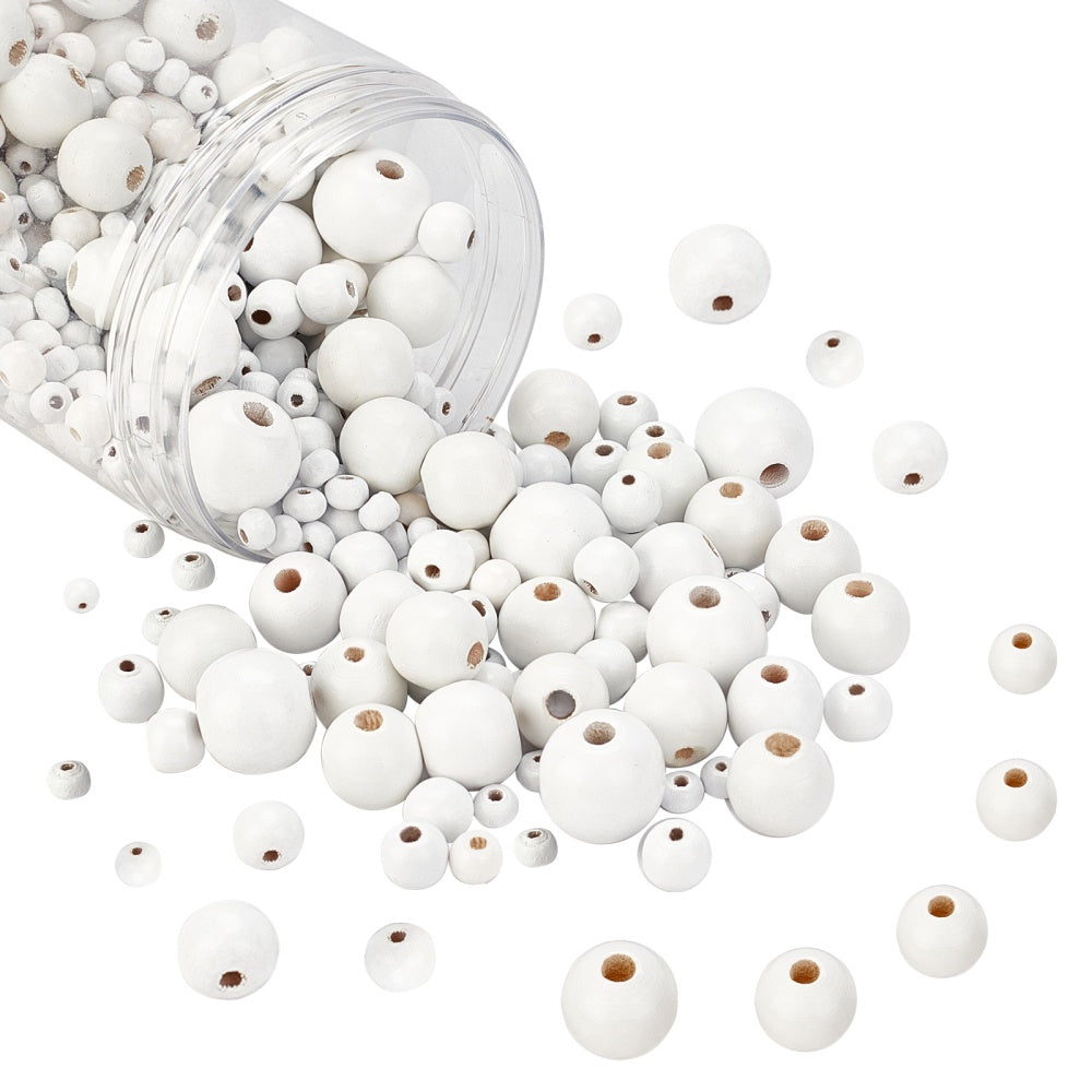 Enhance your jewelry-making projects with these natural wood round beads. Ideal for creating earrings, bracelets, necklaces, and other accessories. Each box contains 805 beads in assorted sizes.