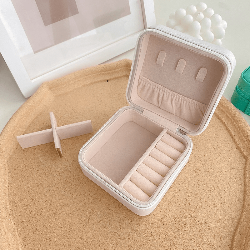 This mini ring storage case is perfect for storing your rings, necklaces, and other small jewelry items. It's portable and ideal for travel.