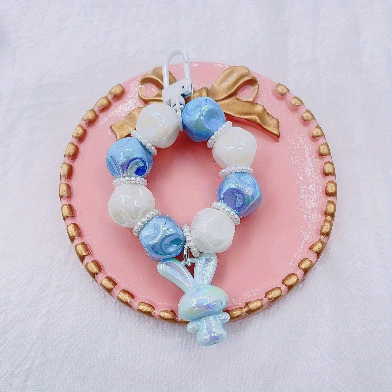 Cute cartoon electroplated resin rabbit keychain pendant perfect for decorating bags and backpacks.