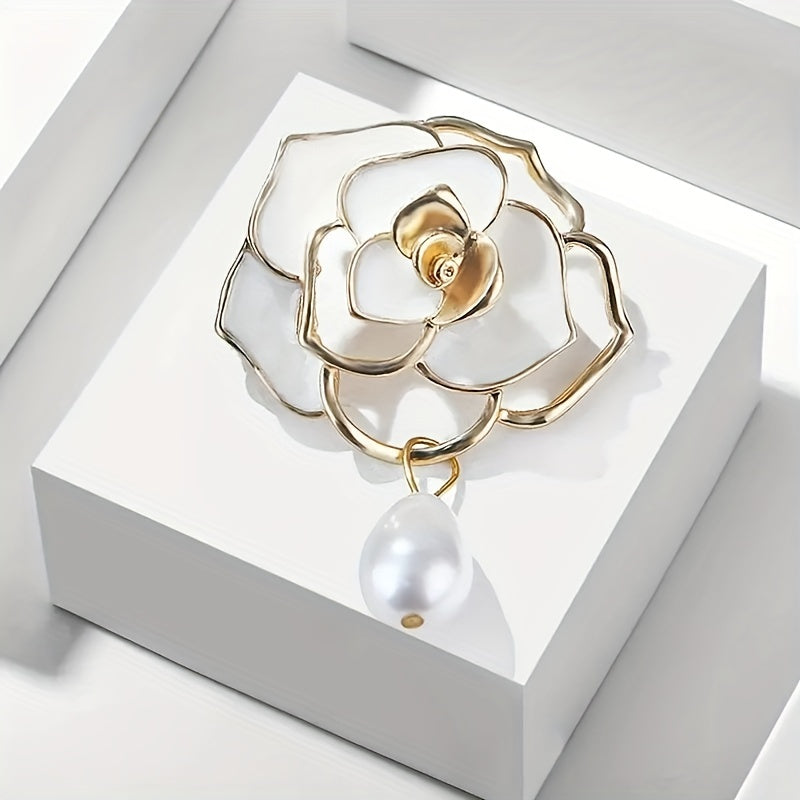 Elegant and stylish rose lapel pin featuring a pearl in the center. Perfect accessory for women and girls.