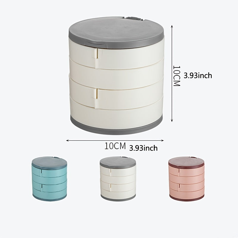 Keep your earrings, necklaces, and wallets neatly stored in this minimalist and dustproof box. The rotating design allows for easy access to your accessories.