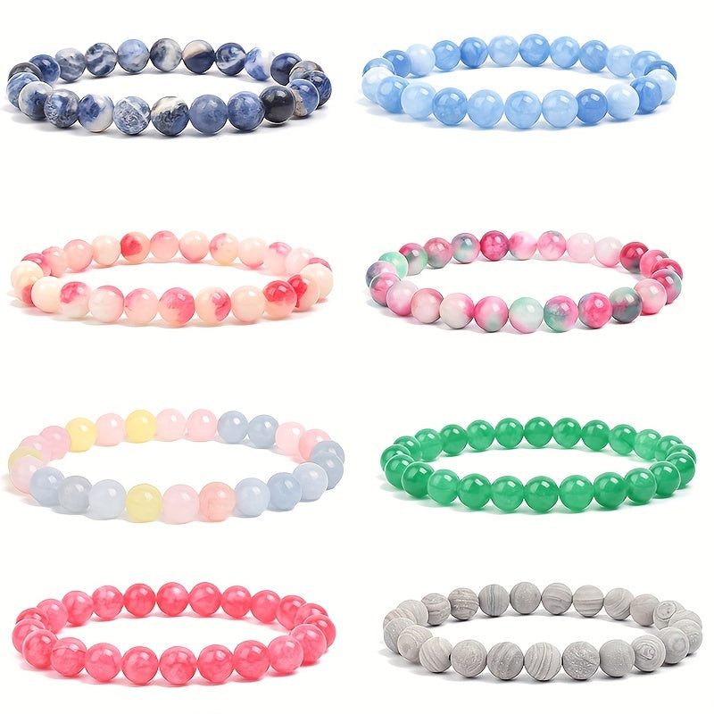 This elastic bracelet features sapphire and aquamarine round beads, making it a perfect gift for boyfriends or girlfriends.