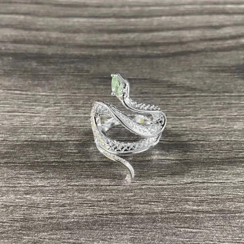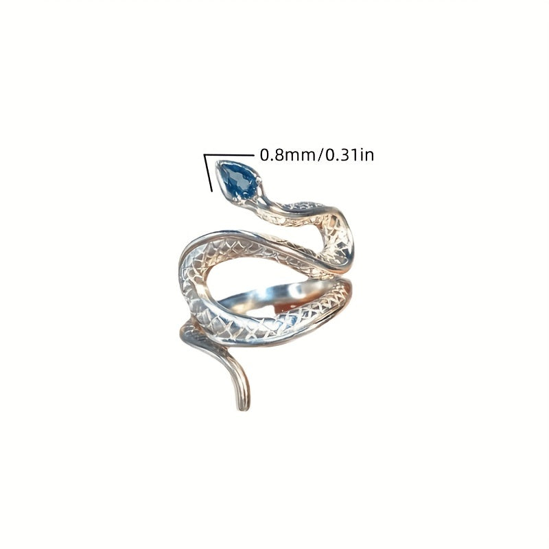 This stylish and unique snake open ring features a sea topaz stone for a touch of luxury.