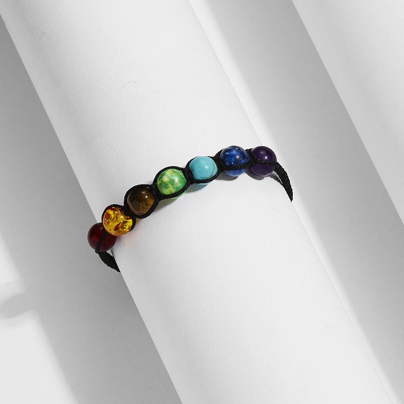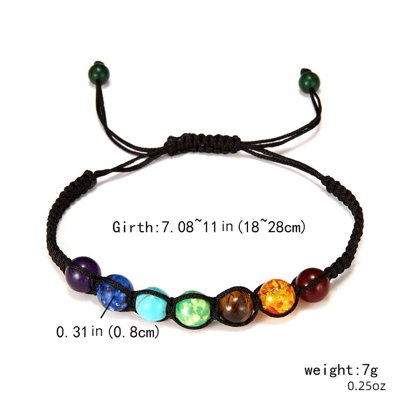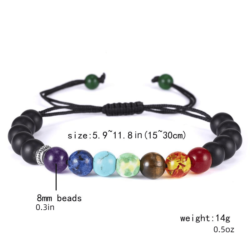 This Seven Chakra Bracelet is designed to relieve stress, relax energy, and promote overall well-being. It features a creative seven rainbow braided design and is adjustable to fit both men and women.