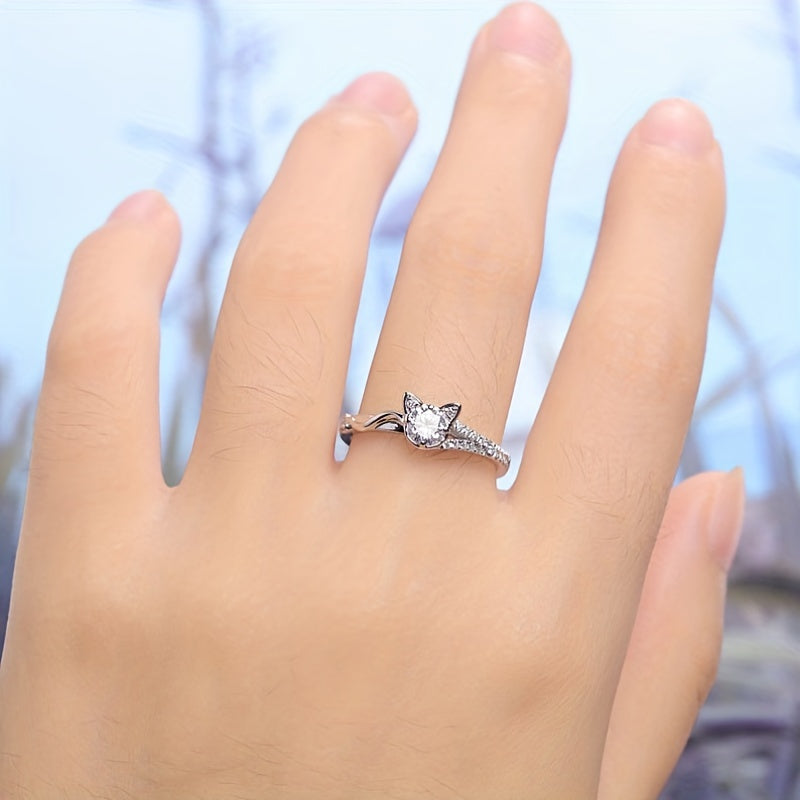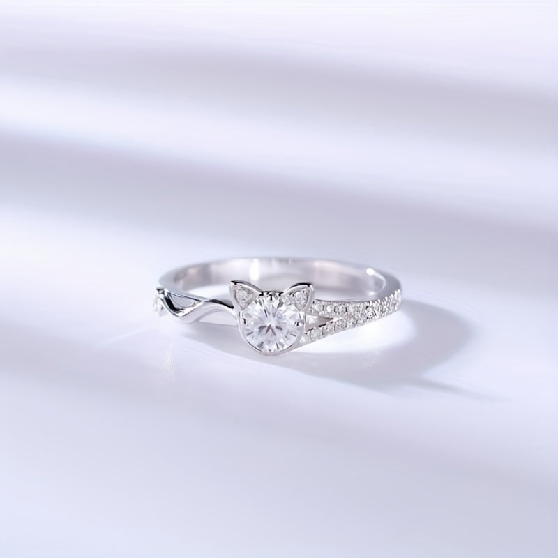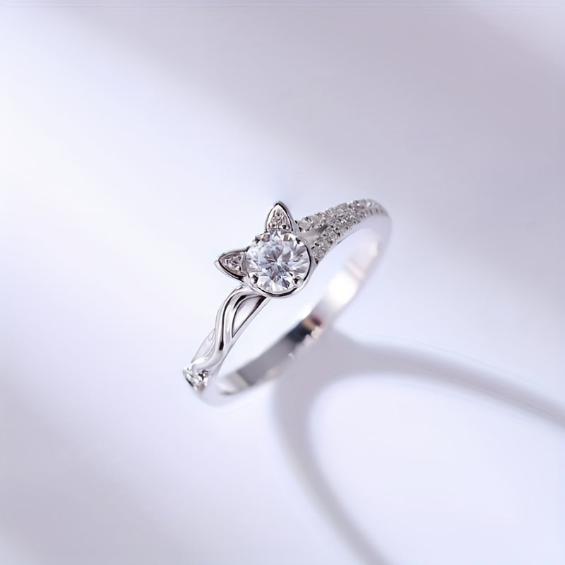 This stunning silver ring features a simulated moissanite diamond in a cat design, perfect for both men and women for casual wear or engagement.