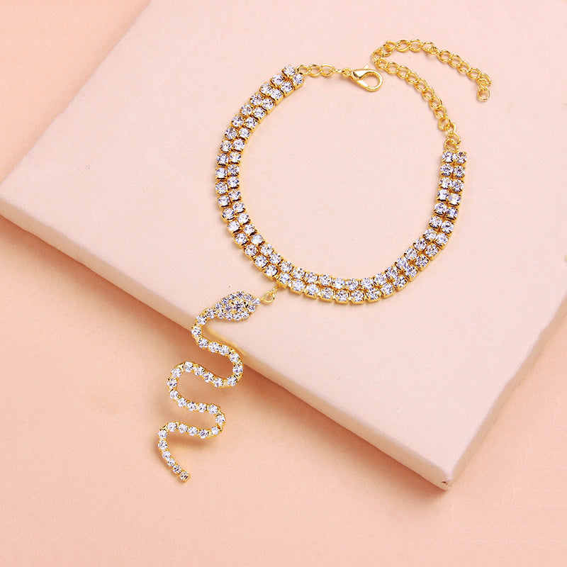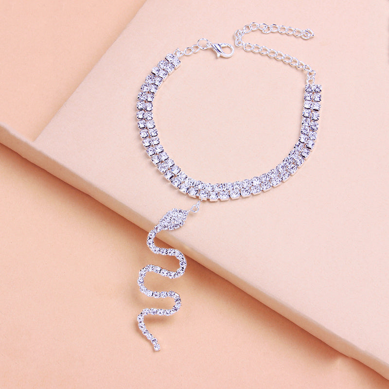 Elevate your ankle with this stunning snake pendant bling anklet featuring sparkling cubic zirconia. Perfect for beach days or as a wedding foot ornament accessory.