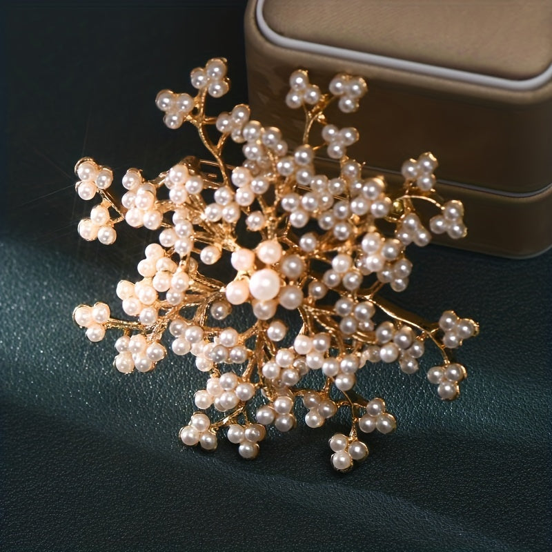 Add a touch of elegance to your outfit with this snowflake faux pearl brooch. Perfect for accessorizing clothing, this creative piece adds a charming appeal.