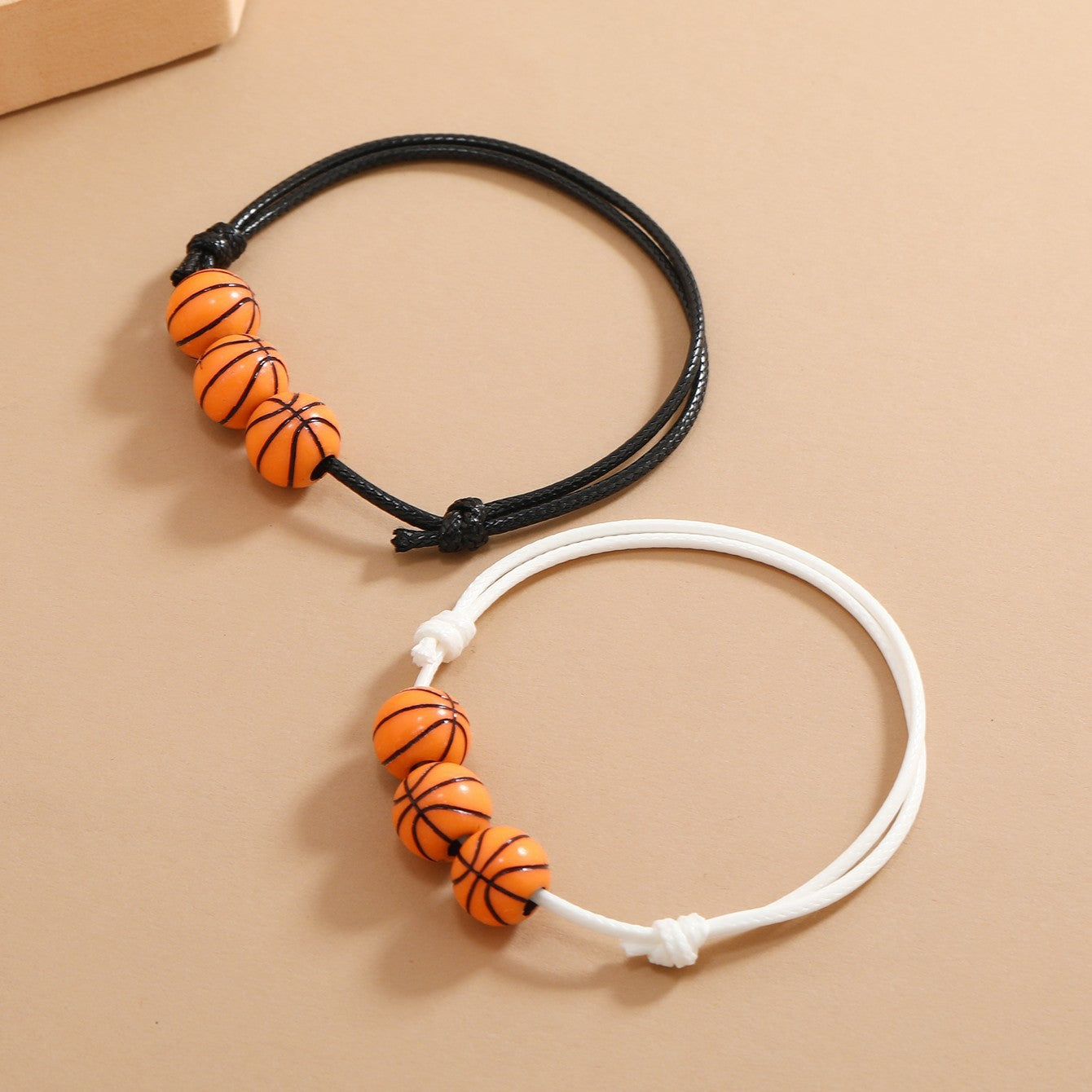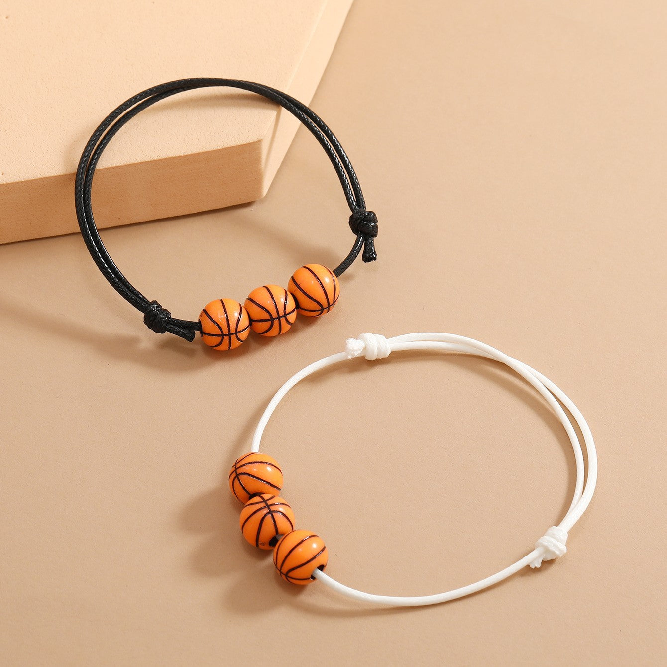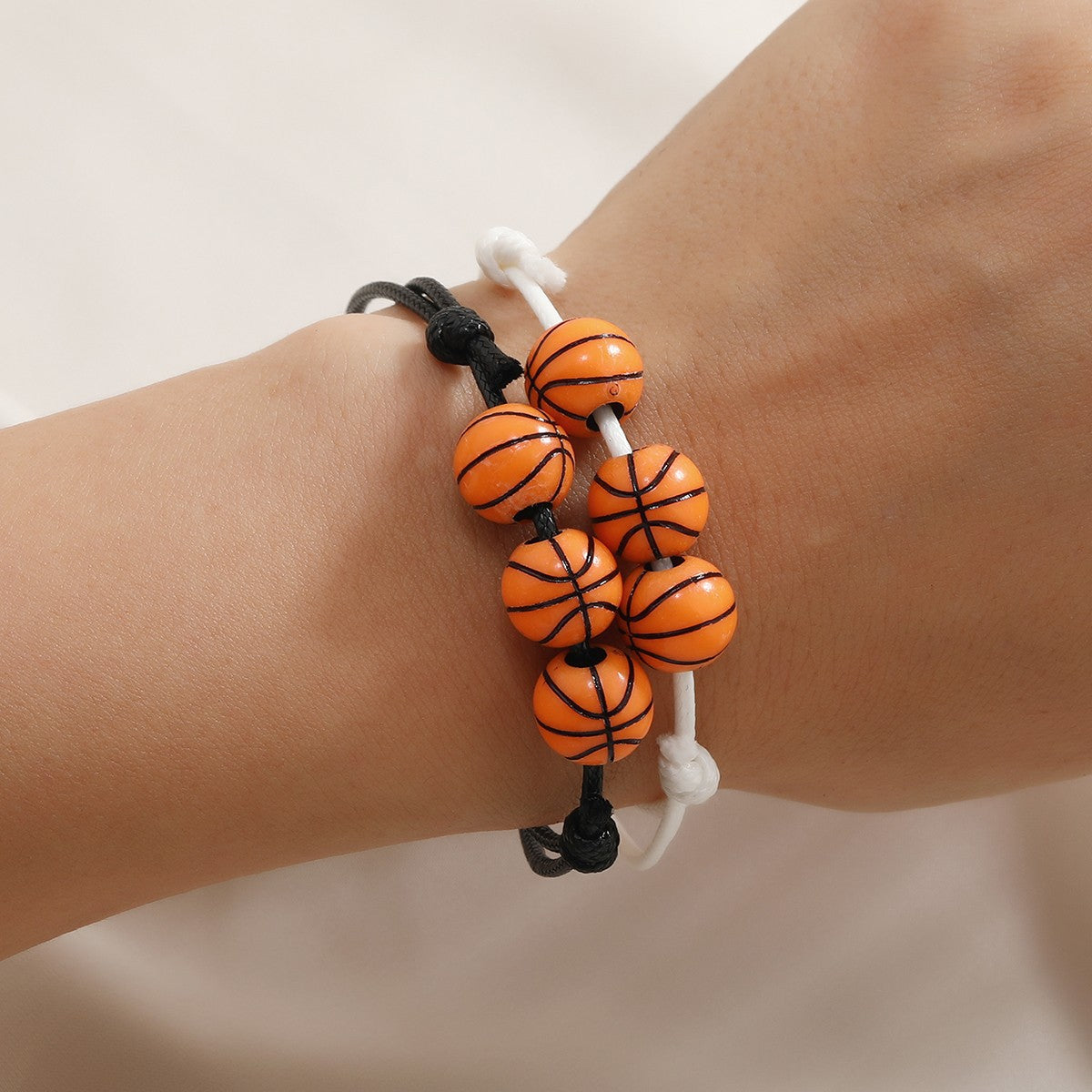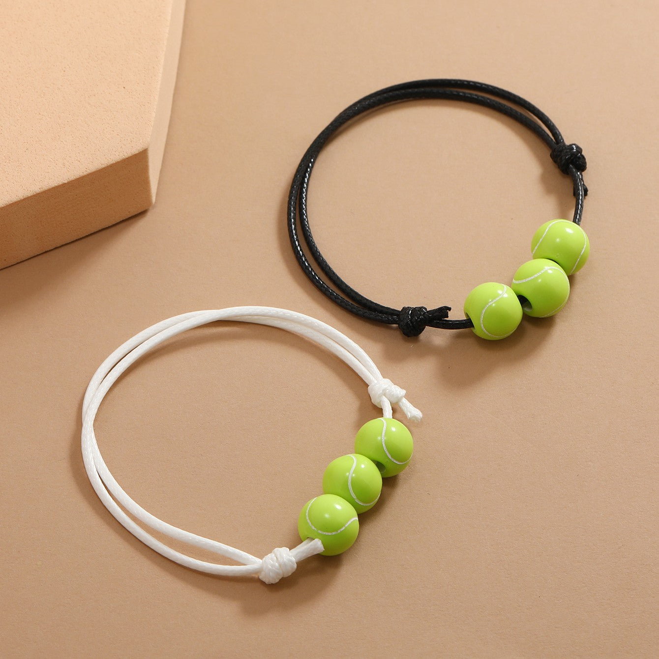 Get this stylish sports hand jewelry set featuring an adjustable bracelet and a ball bracelet. Perfect for basketball, football, and tennis lovers.