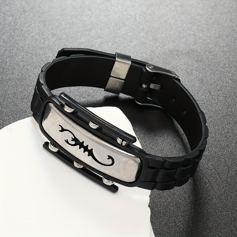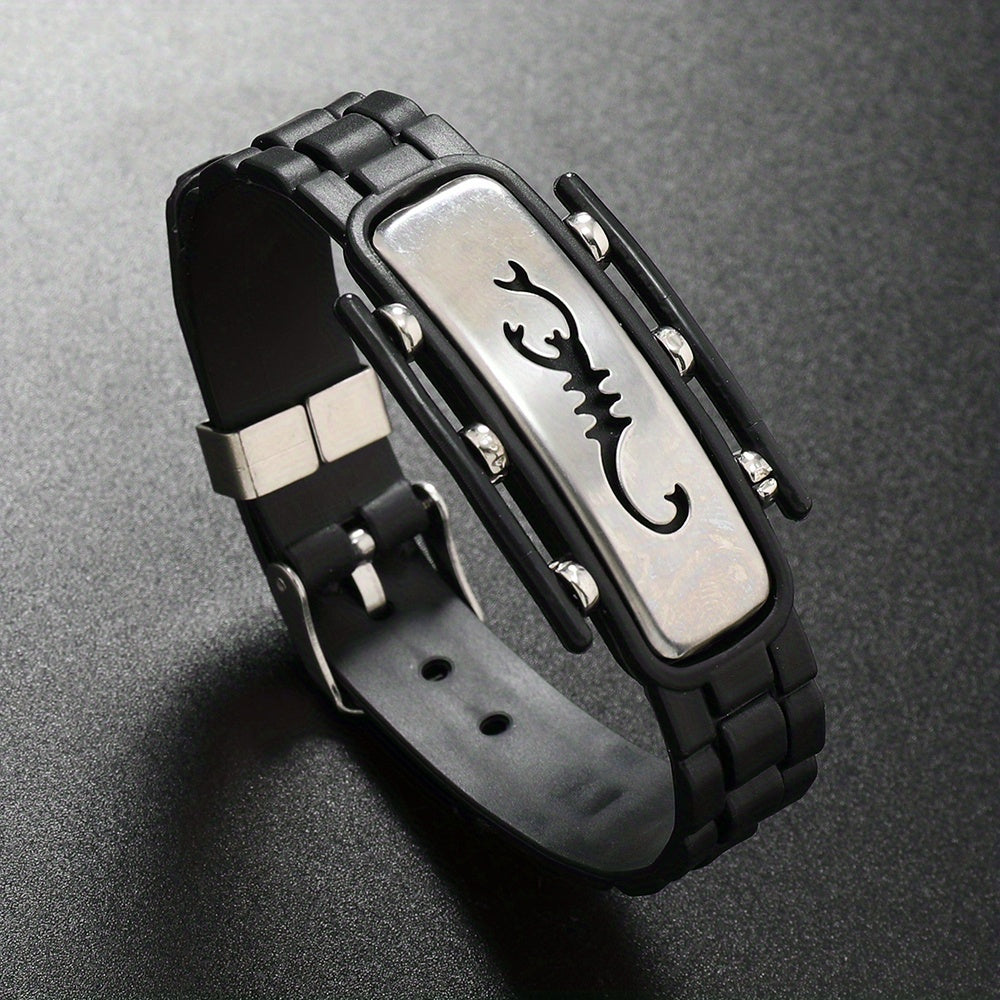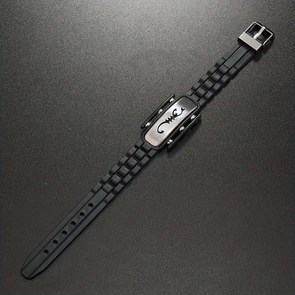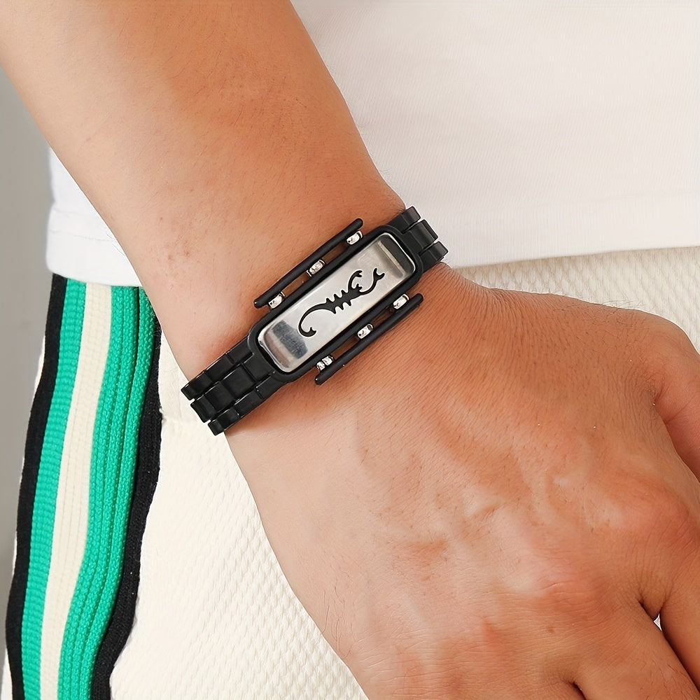 This bracelet is perfect for students and sports enthusiasts. It features a sleek stainless steel design with a comfortable silicone band.