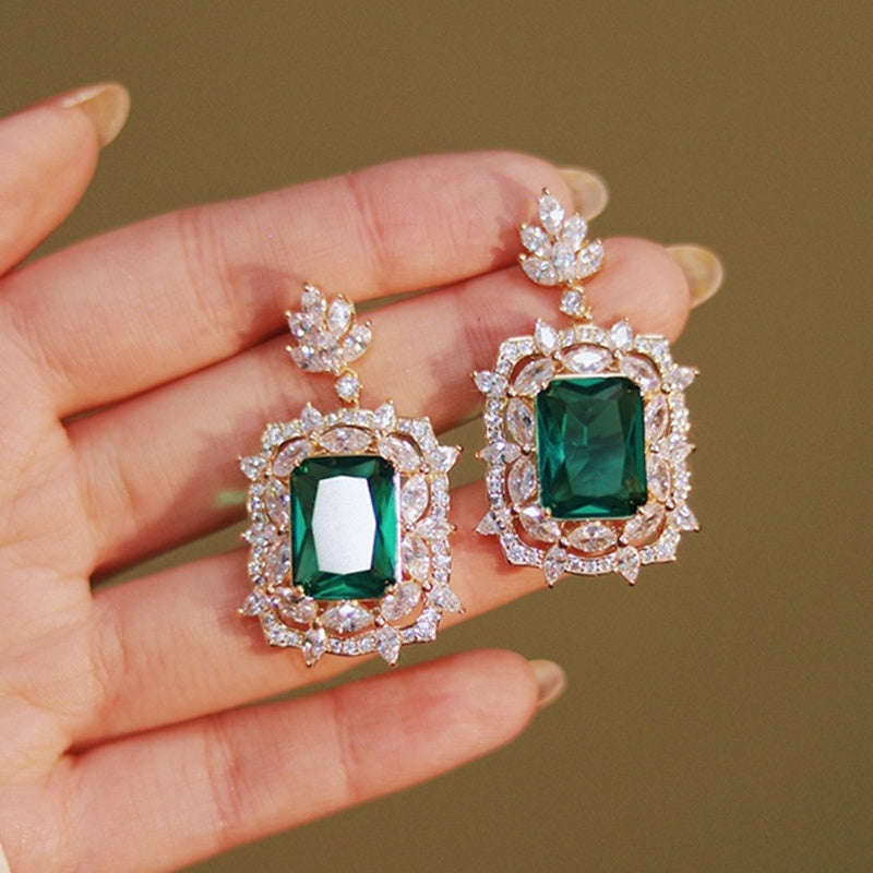 Square Cut Dangle Earrings For Women Banquet Party Charm Jewelry