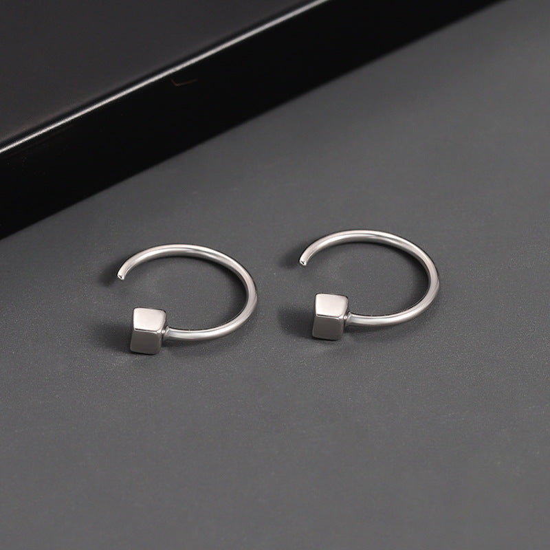 Square Ear Hook Earrings Men's High-end Unisex Piercing Jewelry