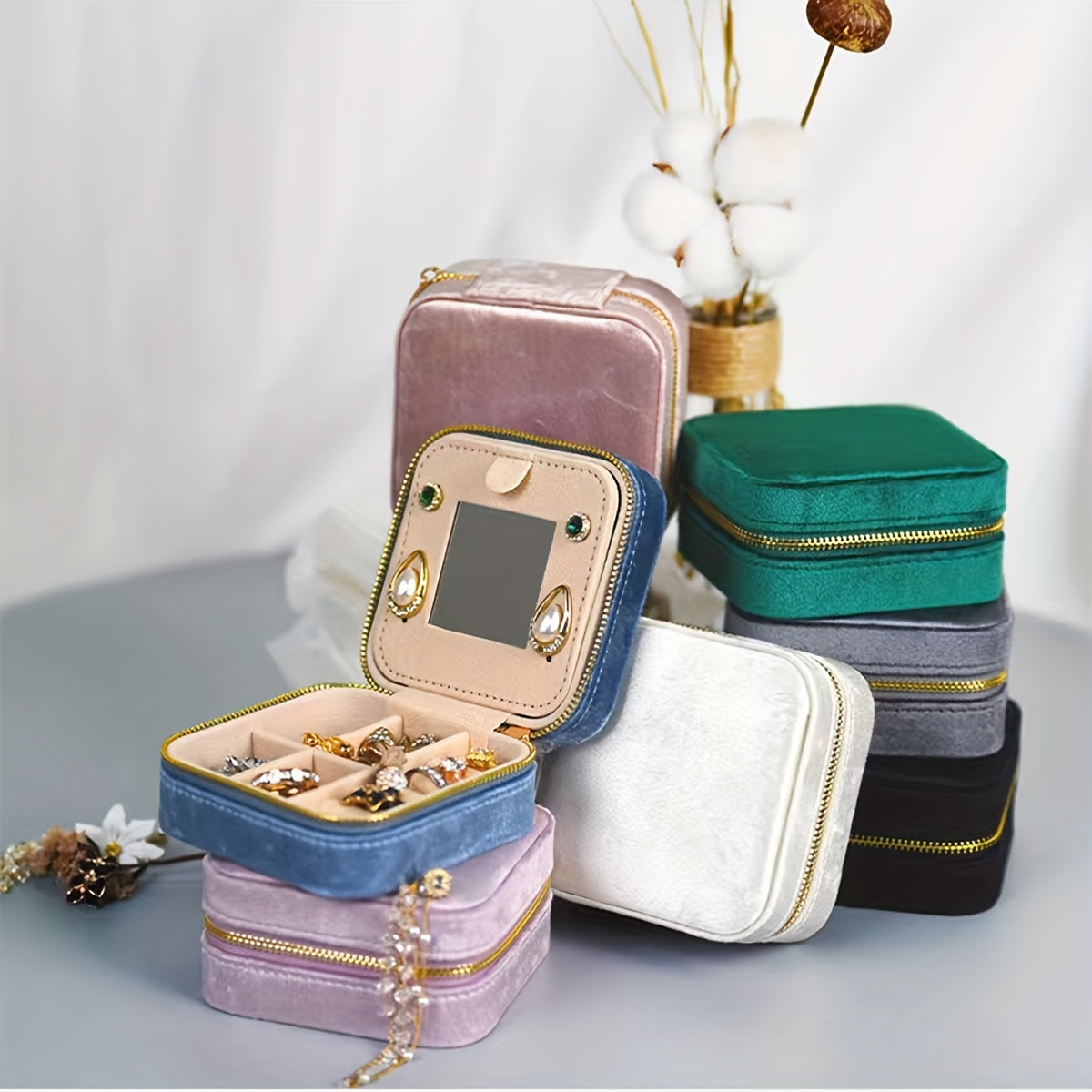 Keep your earrings, rings, and necklaces organized in this stylish and convenient jewelry box. Features a built-in makeup mirror for easy access.