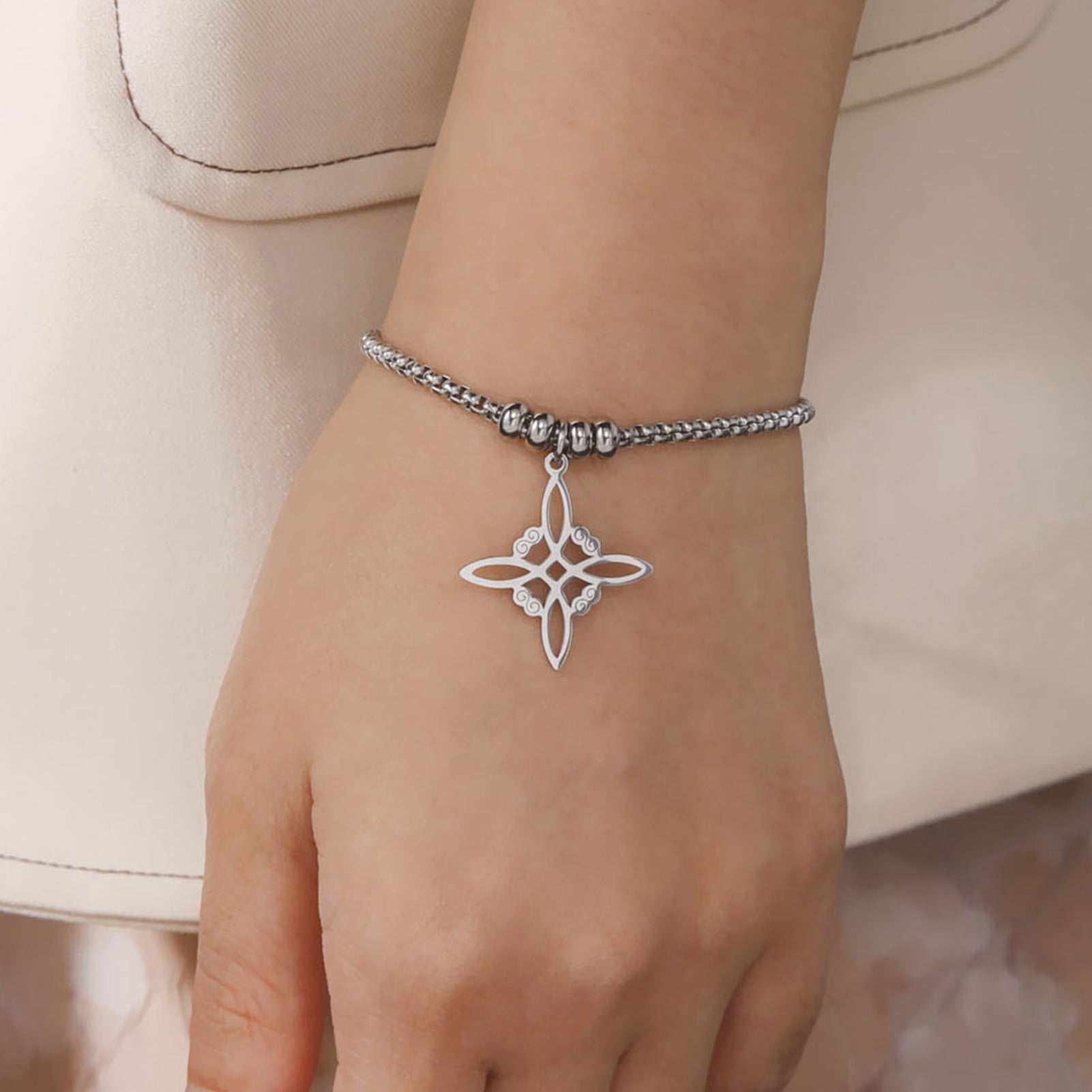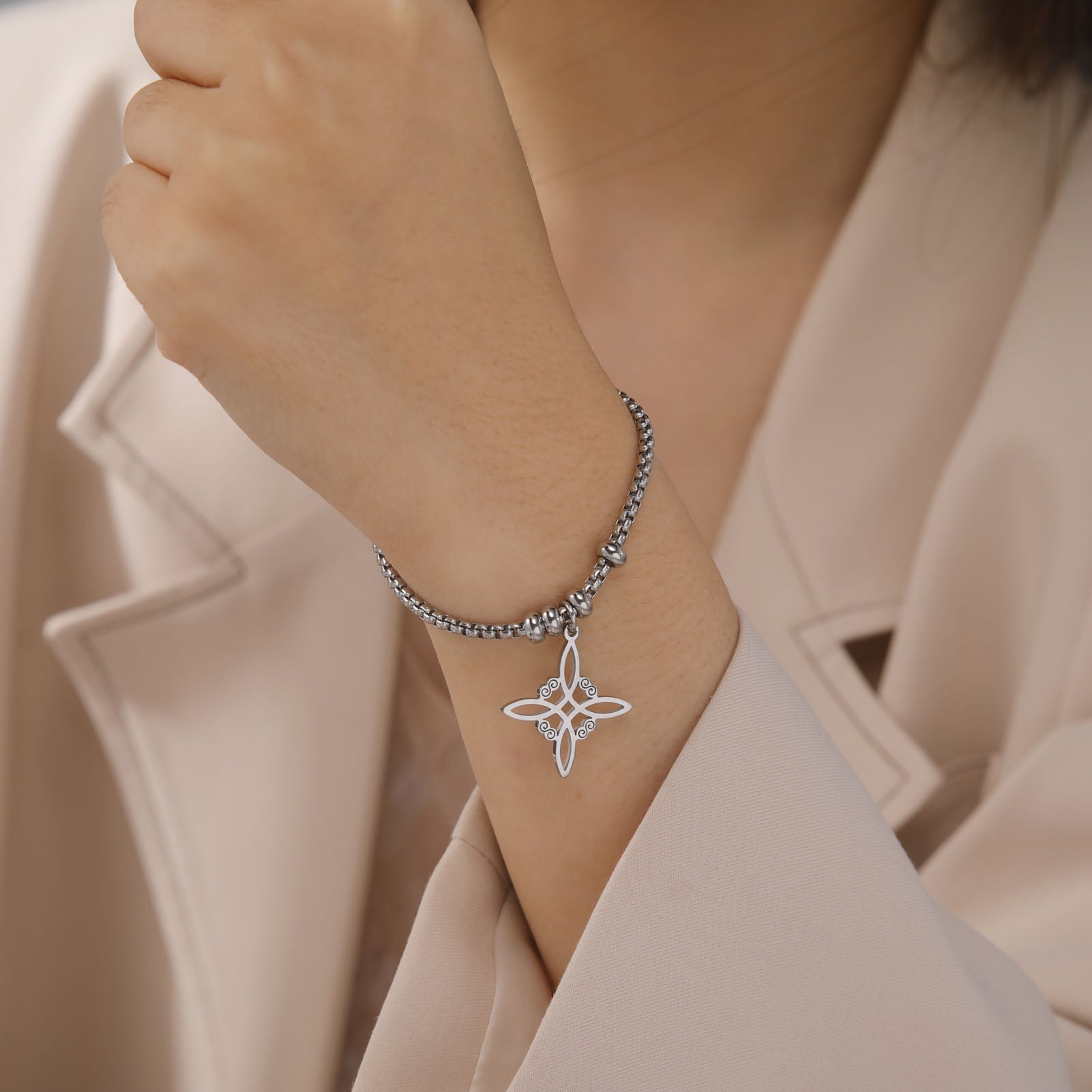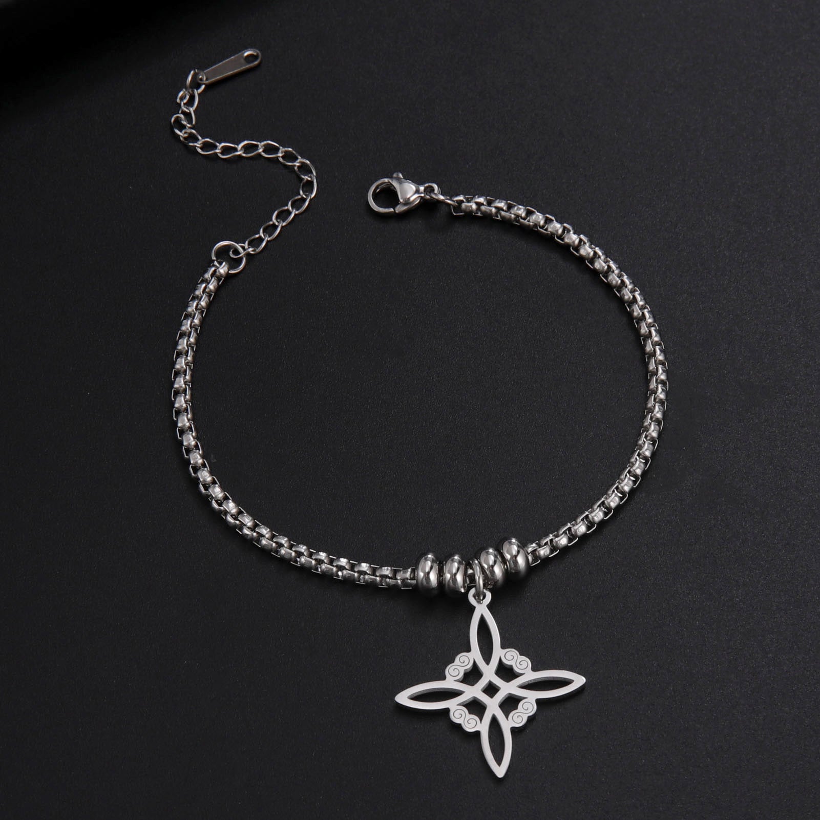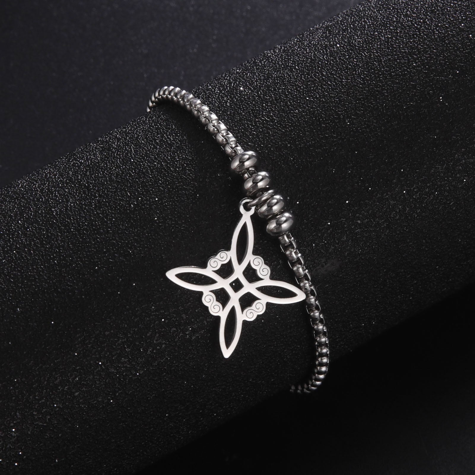 Add a touch of Irish charm to your accessories with this beautiful silver stainless steel Celtics knot bracelet. Perfect for those who love witchy jewelry!