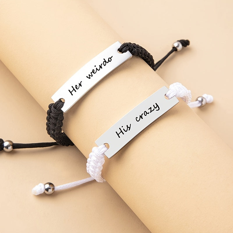 This European and American style bracelet is made of stainless steel, featuring a hand-woven and rope braided design. Perfect for couples to show their love and commitment.
