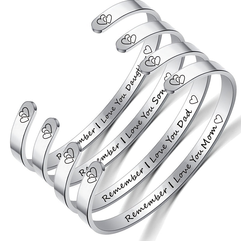 This stainless steel bracelet is a perfect gift for family members. Engraved with an open heart design, it is ideal for weddings, Christmas, or special occasions.