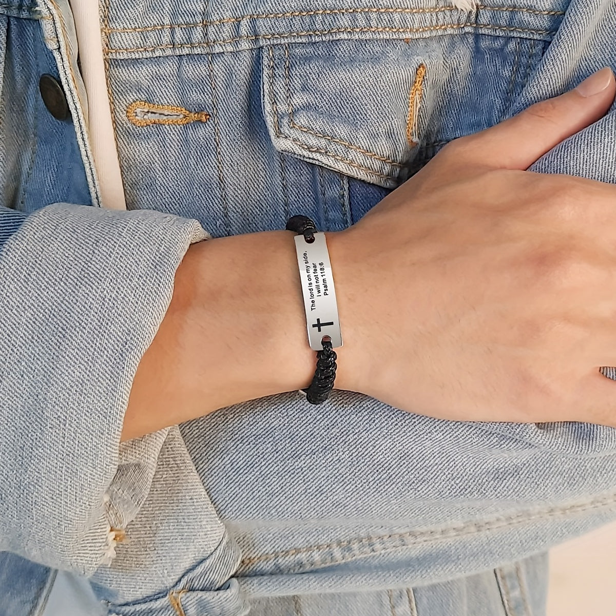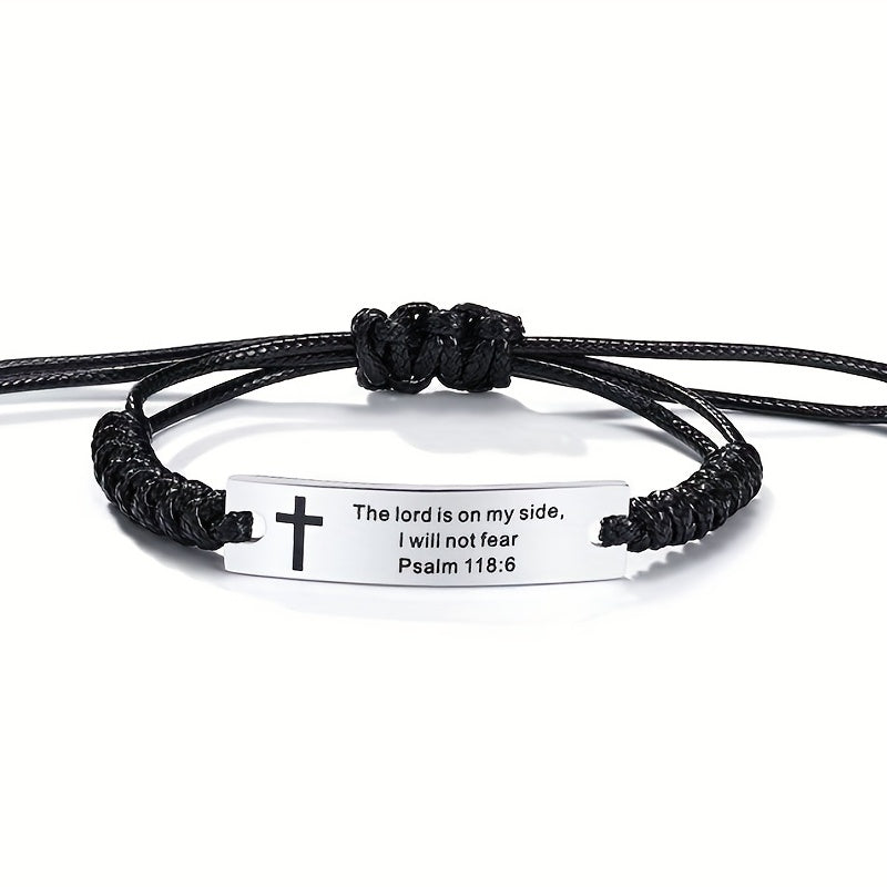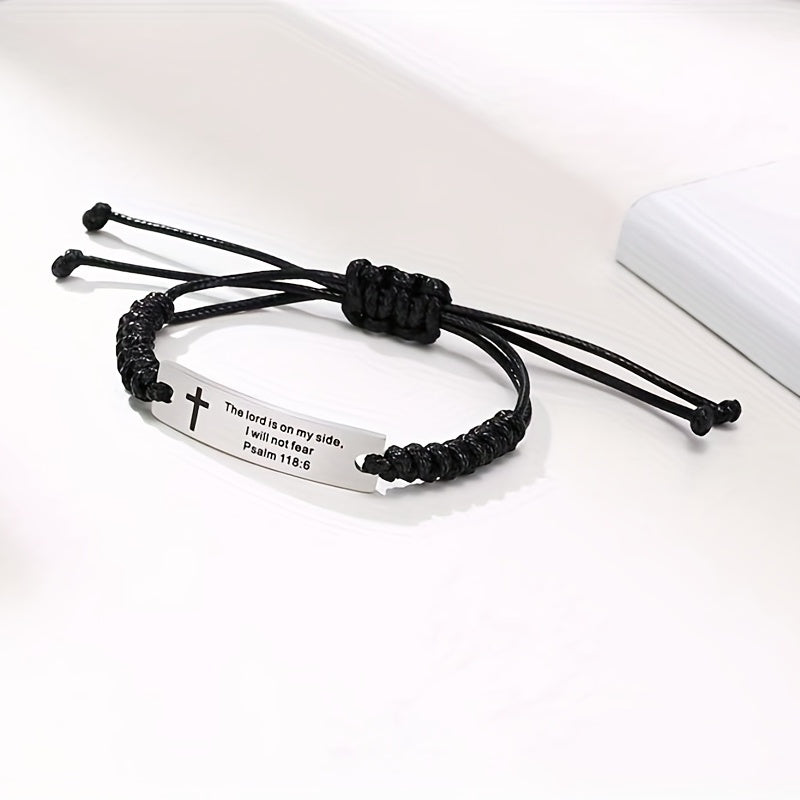 Elegantly designed curved ring featuring inspirational lettering in a braided style.
