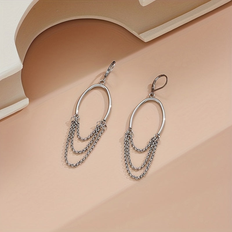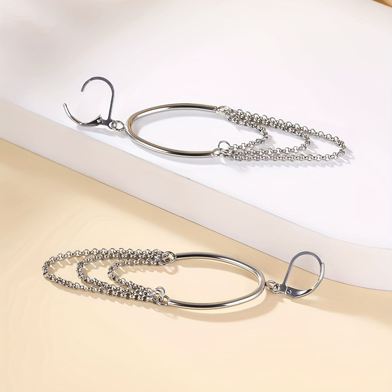 Add elegance to your look with these round face thin titanium steel earrings. Perfect for any occasion.