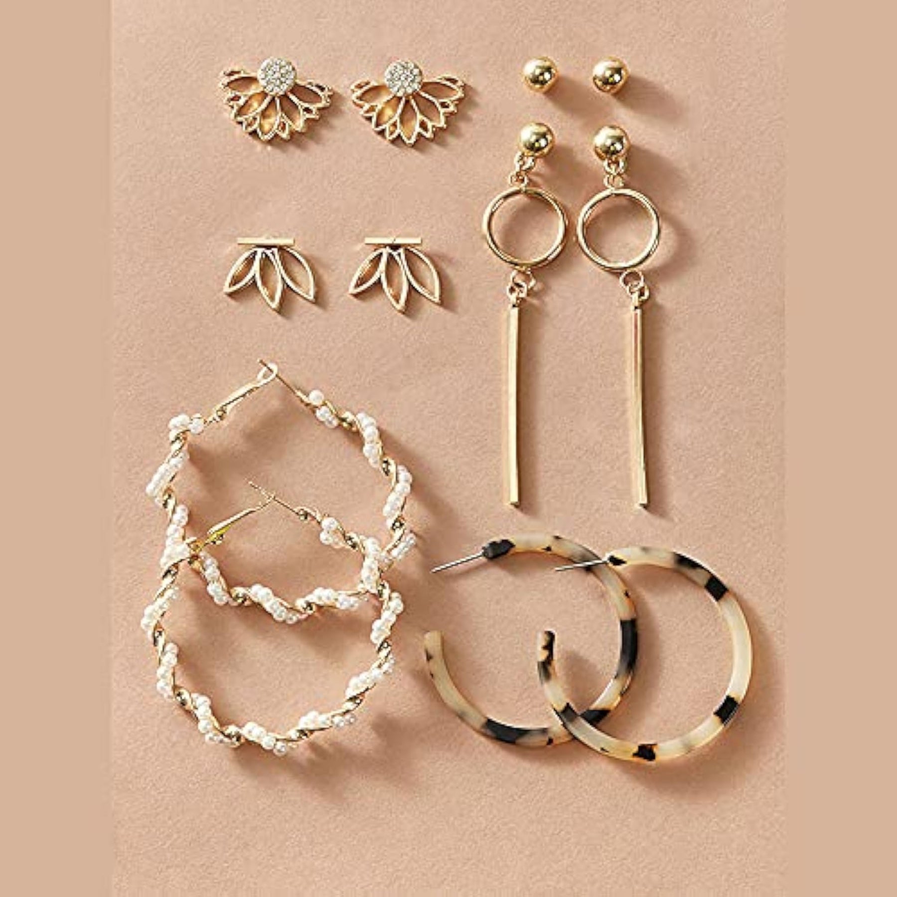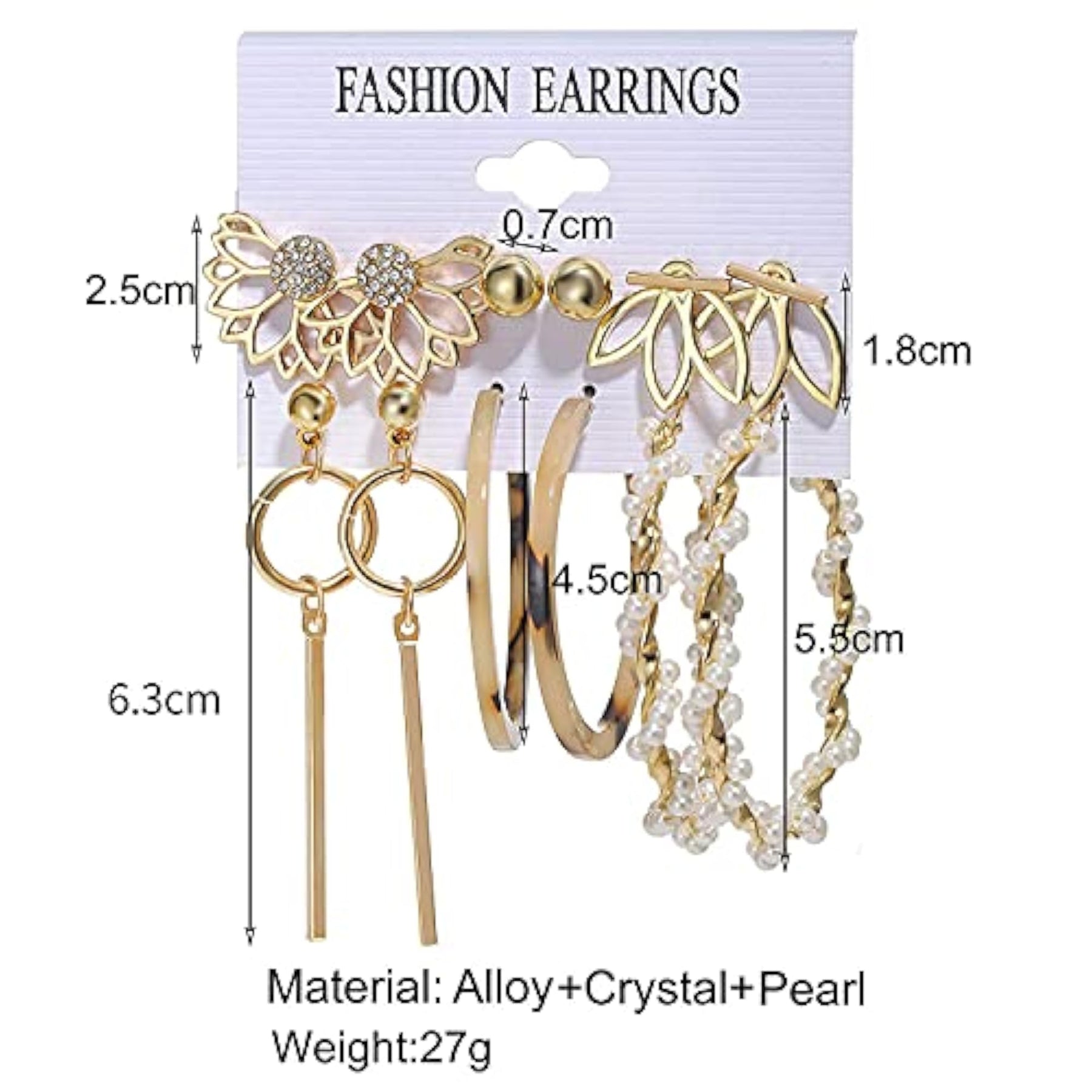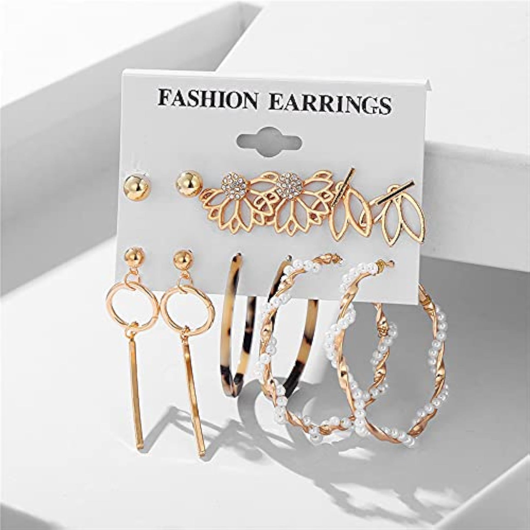 Elegant and trendy metal earrings perfect for women. Set includes 6 pairs of beautifully designed earrings. Ideal for various occasions.